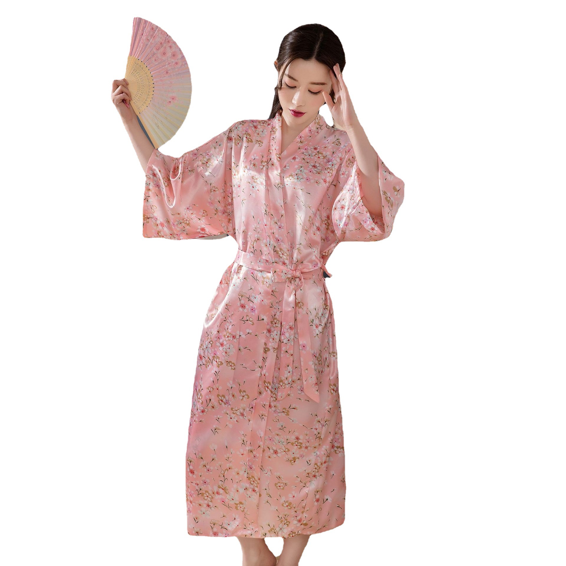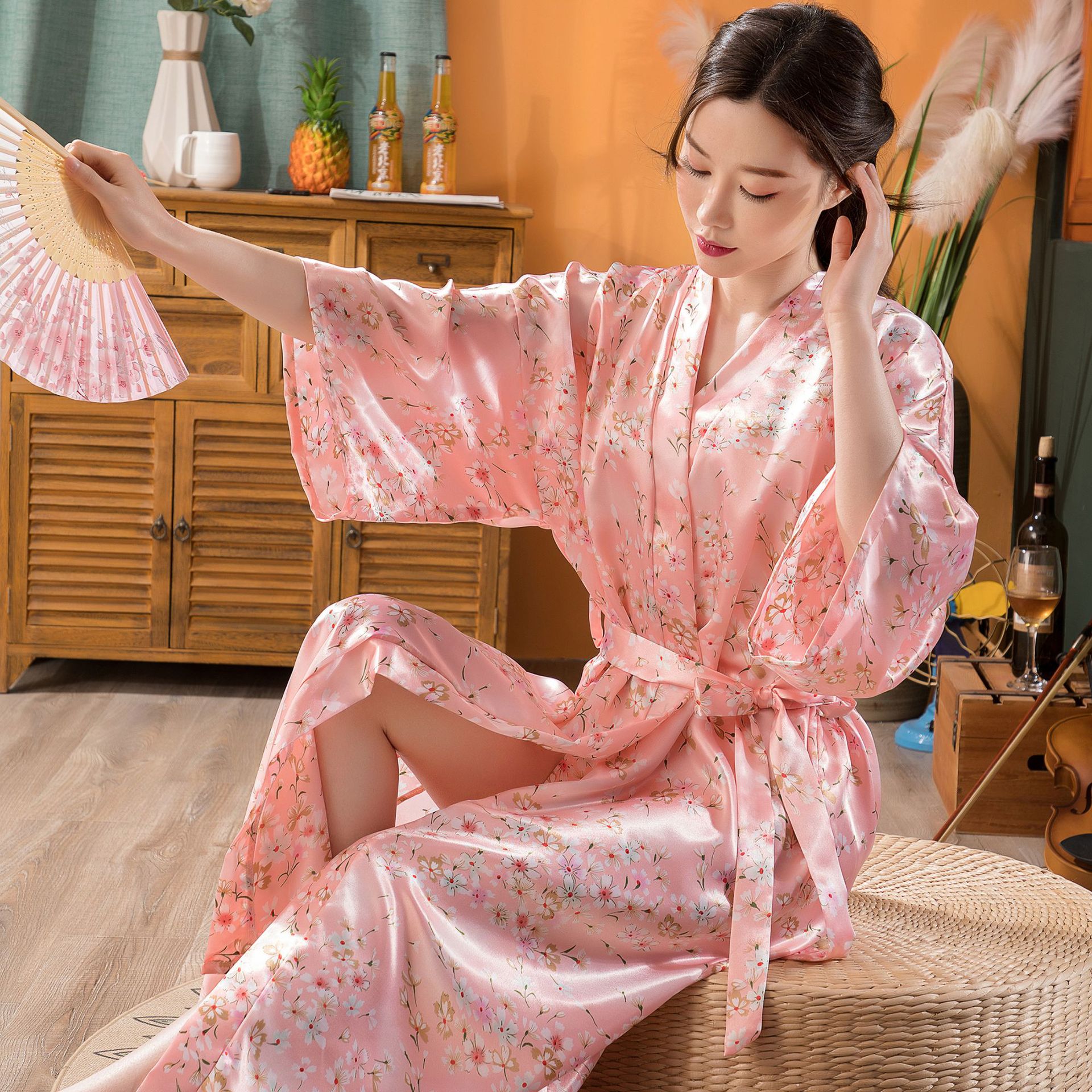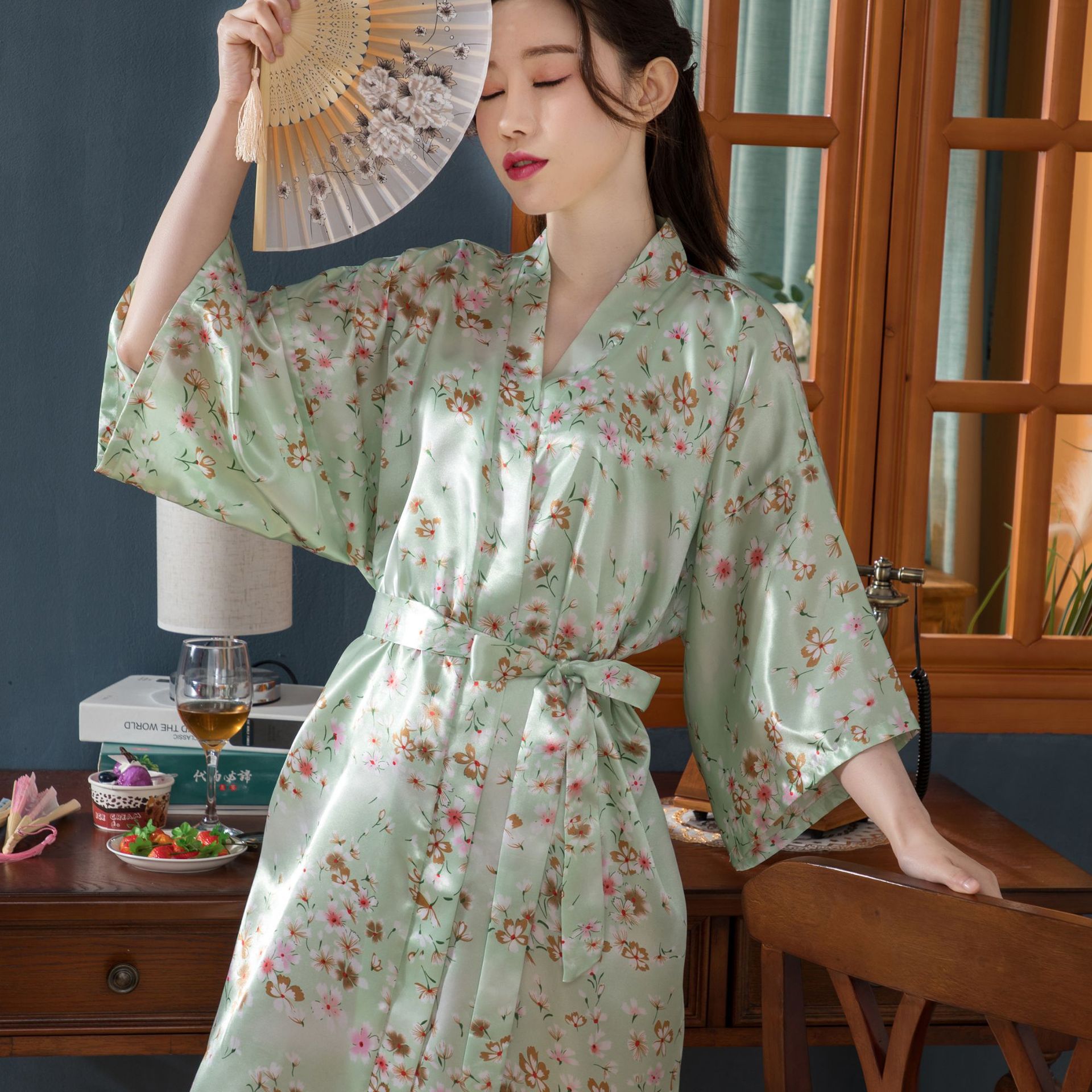 Дамы шелковые атласные кимоно невесты платье пижамы внешней торговли Европейский и американский ледяной шелк кардиган Лето сексуальный длинный халат