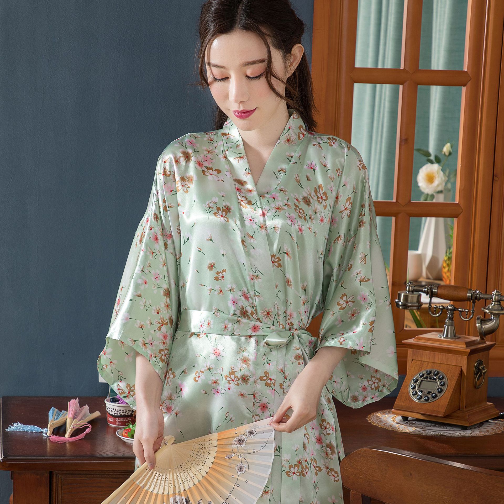 Главная страница > Дамы шелковые атласные кимоно невесты платье пижамы внешней торговли Европейский и американский ледяной шелк кардиган Лето сексуальный длинный халат
