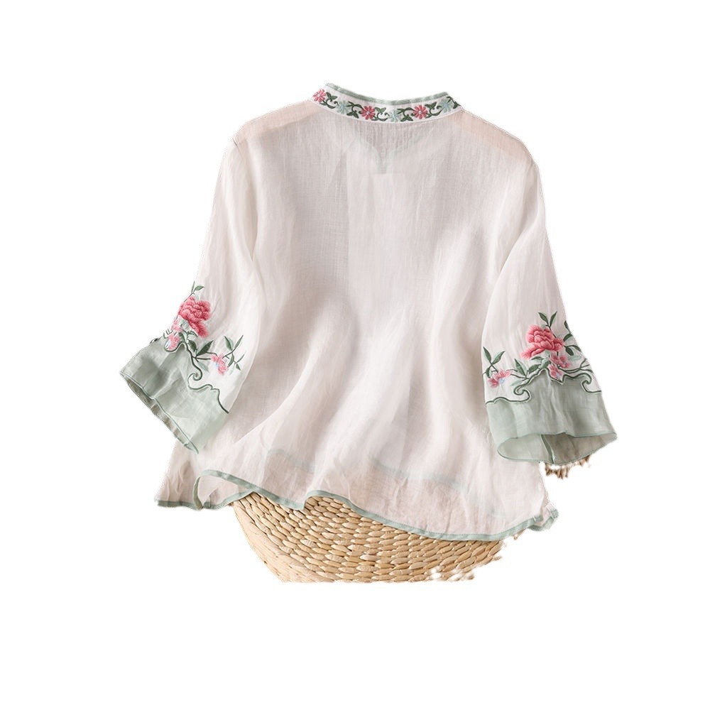 Ретро-цветная вышивка рубашка женская летняя ретро-этническая свободная семипроцентная рубашка с рукавами