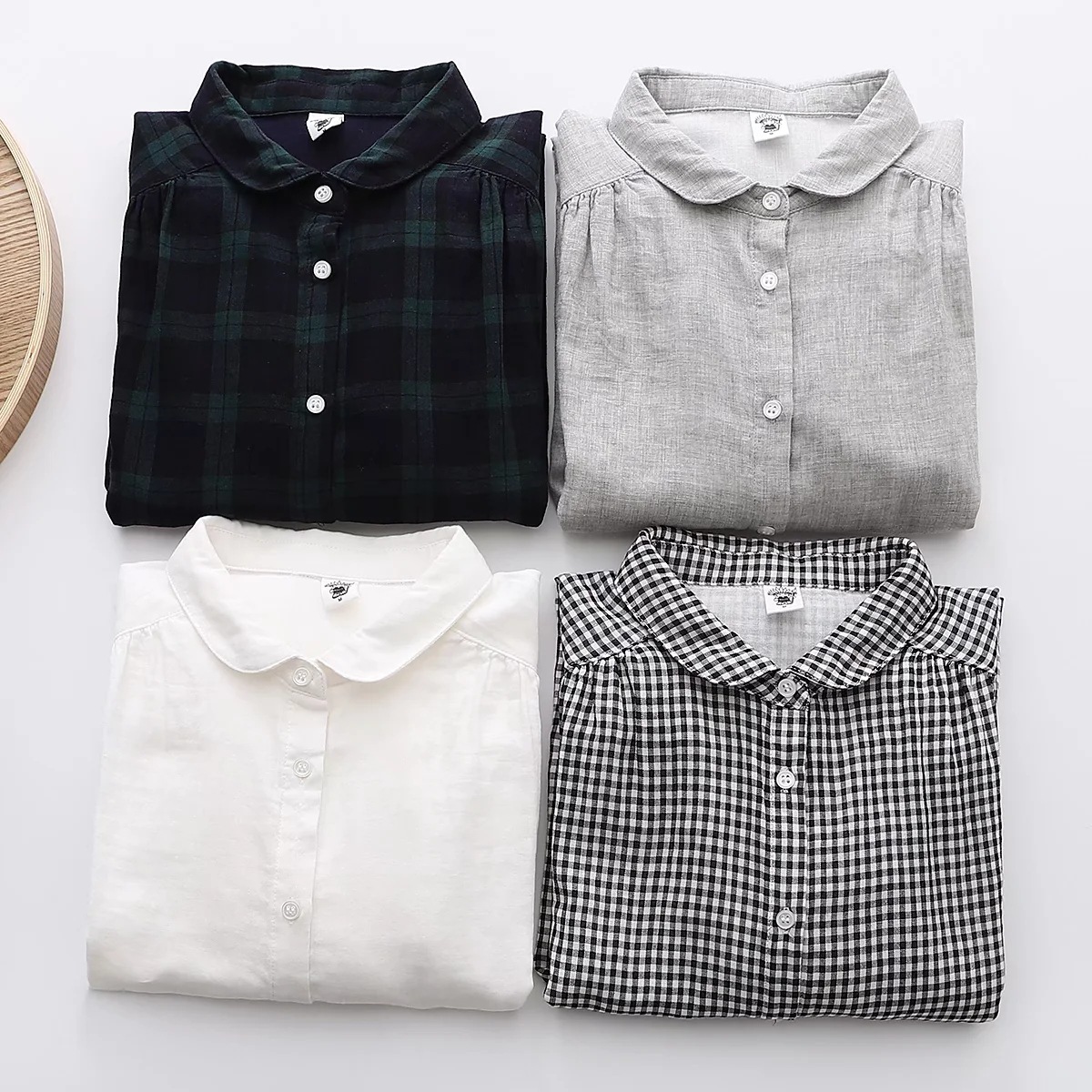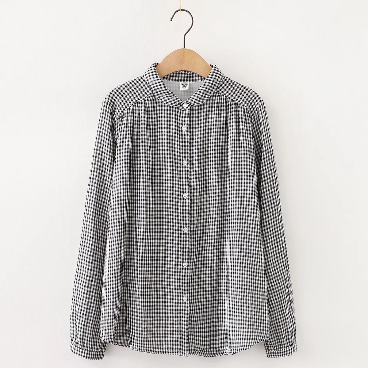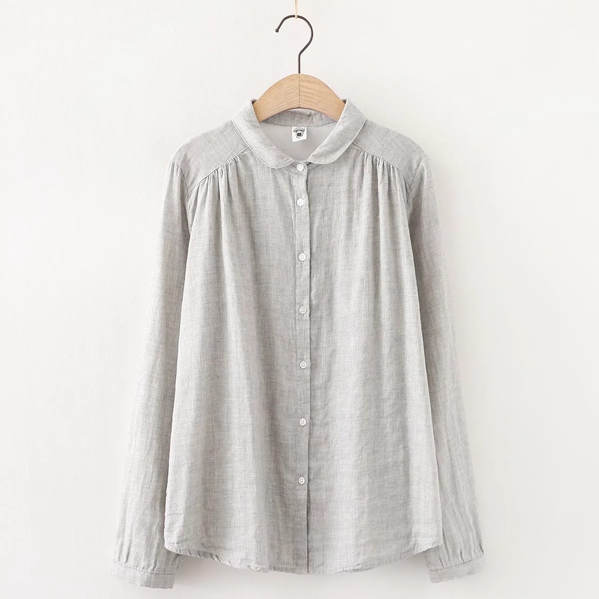 Главная страница > 60111 Новинка ранней осени, винтажная двухслойная рубашка из хлопчатобумажной пряжи с длинными рукавами, с маленькими лацканами, Базовая рубашка для творчества