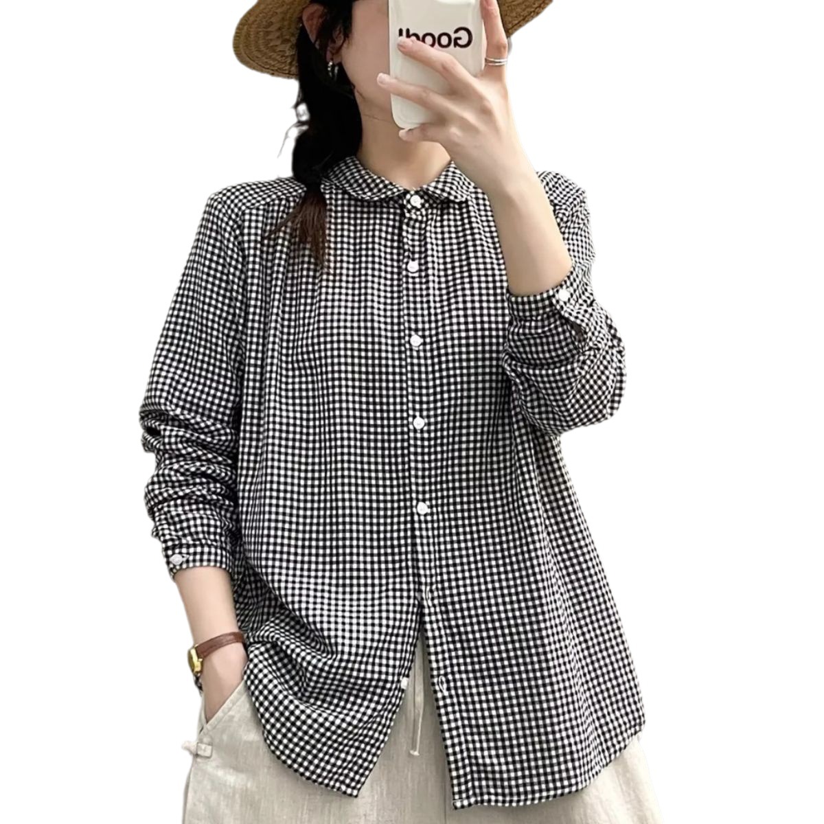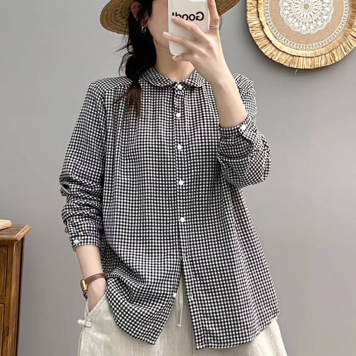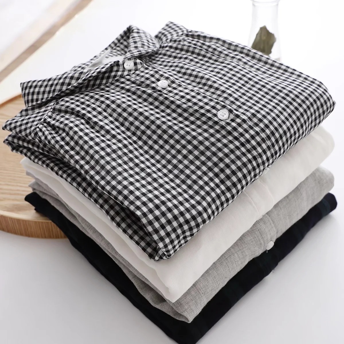 Главная страница > 60111 Новинка ранней осени, винтажная двухслойная рубашка из хлопчатобумажной пряжи с длинными рукавами, с маленькими лацканами, Базовая рубашка для творчества