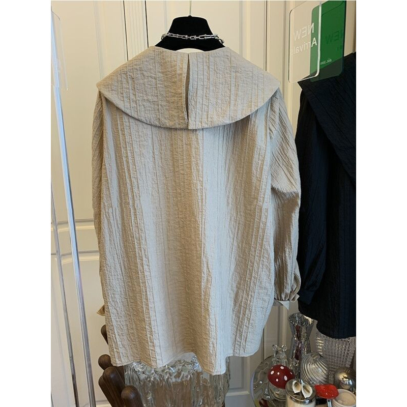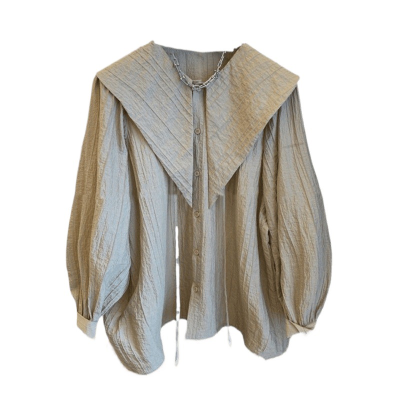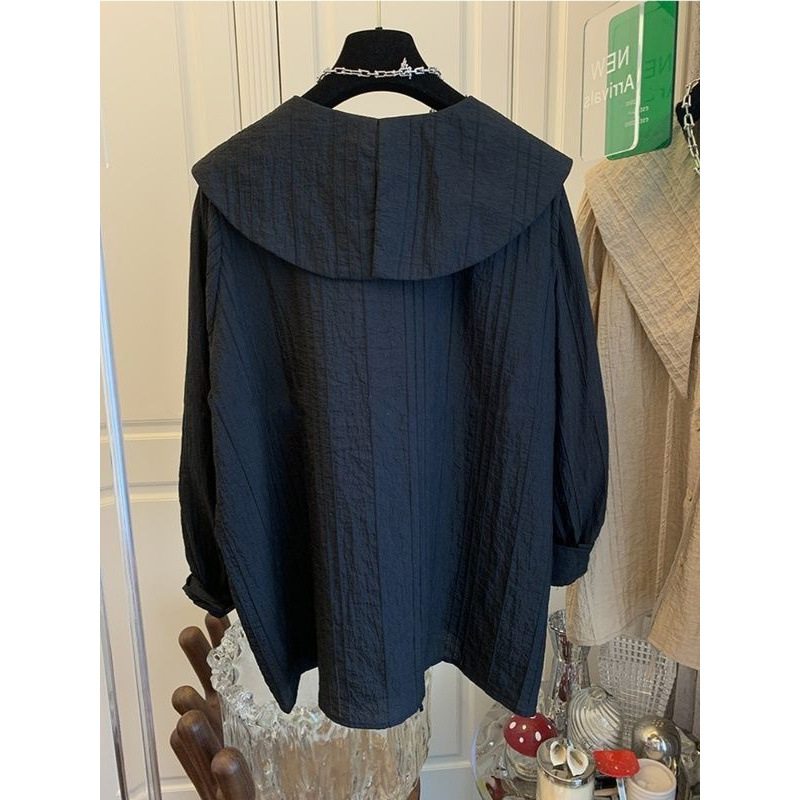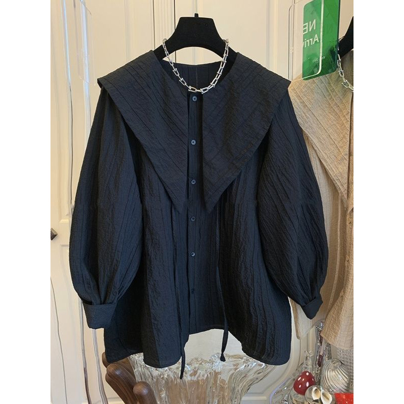 Главная страница > 2025 весенняя новая плиссированная рубашка с большим острым воротником, женская свободная повседневная рубашка с пышными рукавами, модный модный топ Babydoll