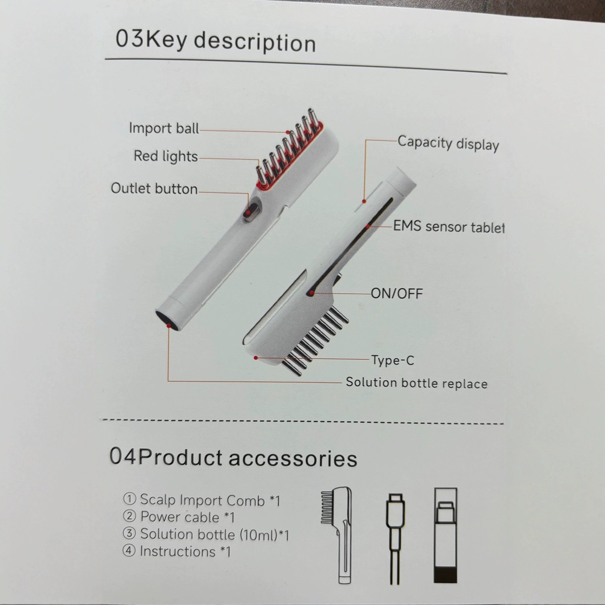Устройство для нанесения жидкости с красным светом для ухода за кожей головы, питания волос, массажа, здоровья волос, расчески и нанесения жидкости на кожу головы.