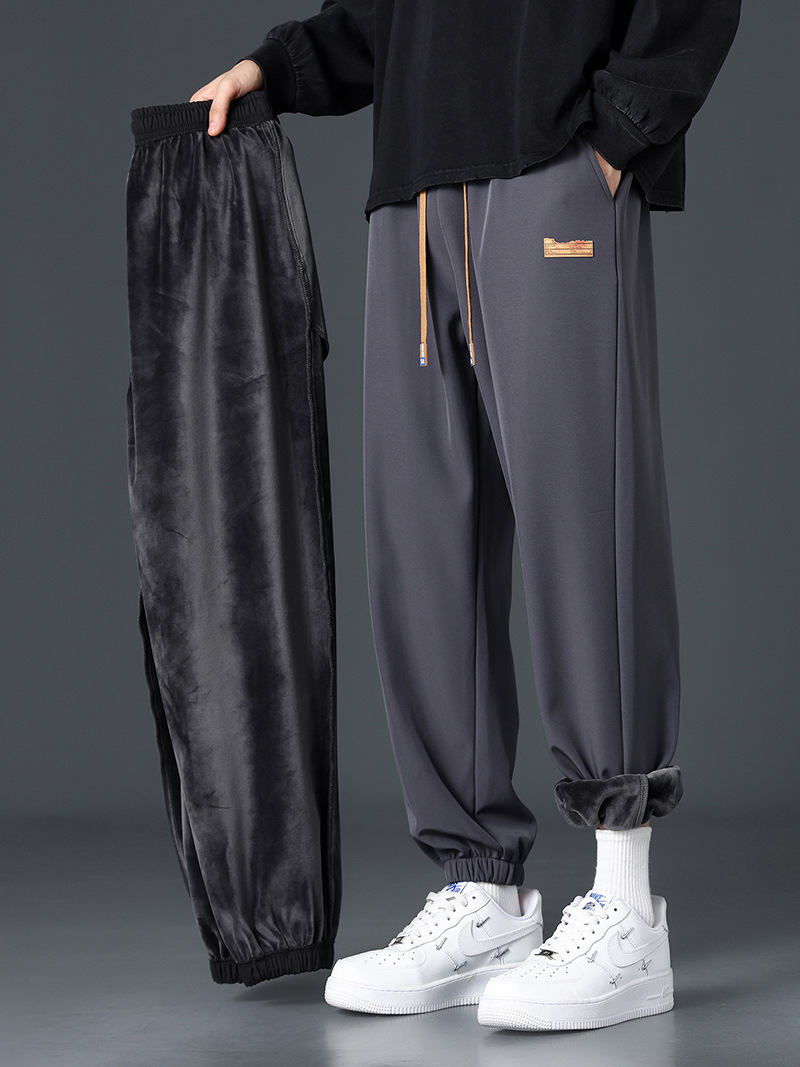 Главная страница > Мужские утепленные брюки на флисовой подкладке, теплые хлопковые джоггеры для осени и зимы, свободные повседневные длинные брюки для зимних видов спорта.