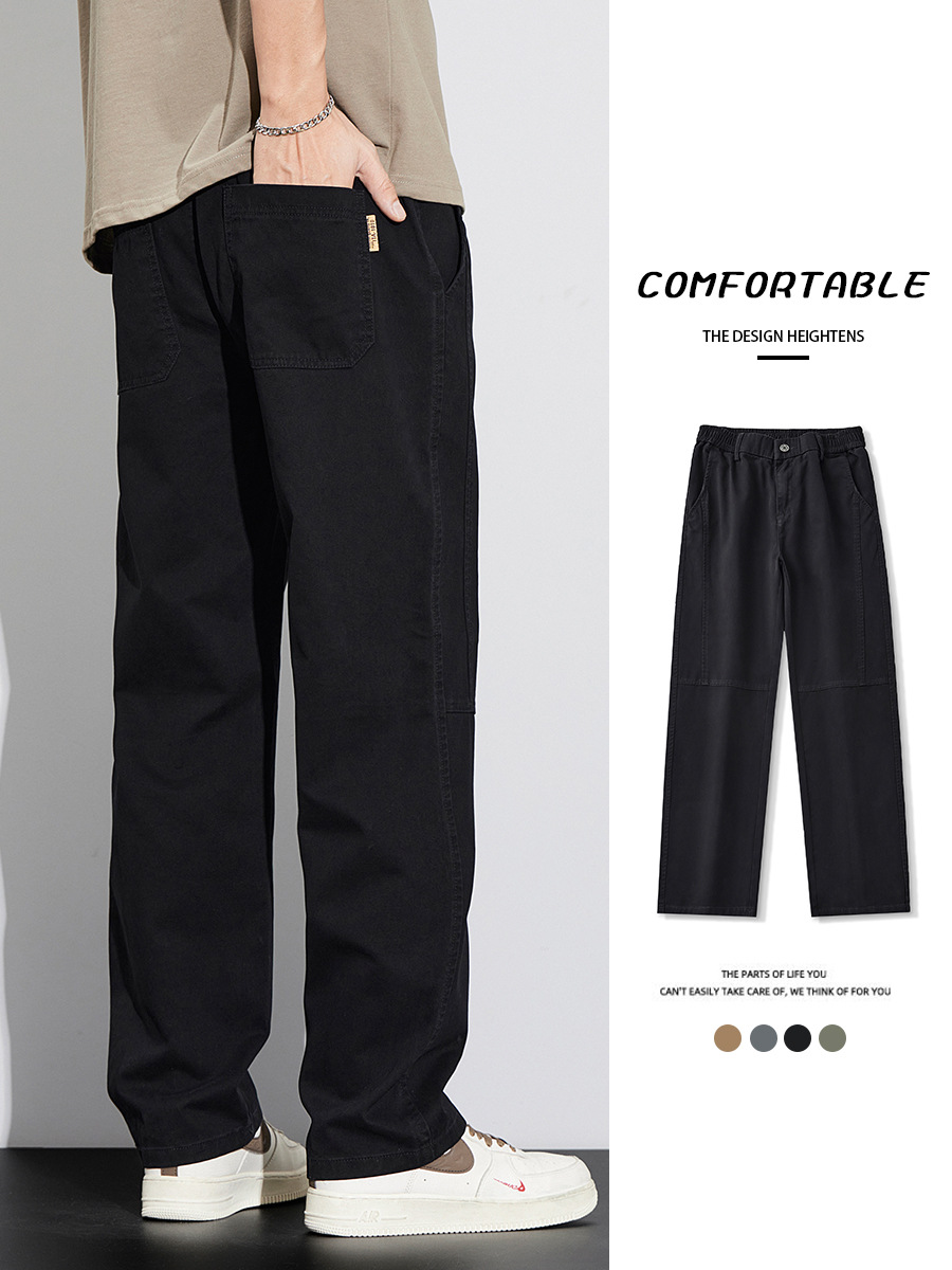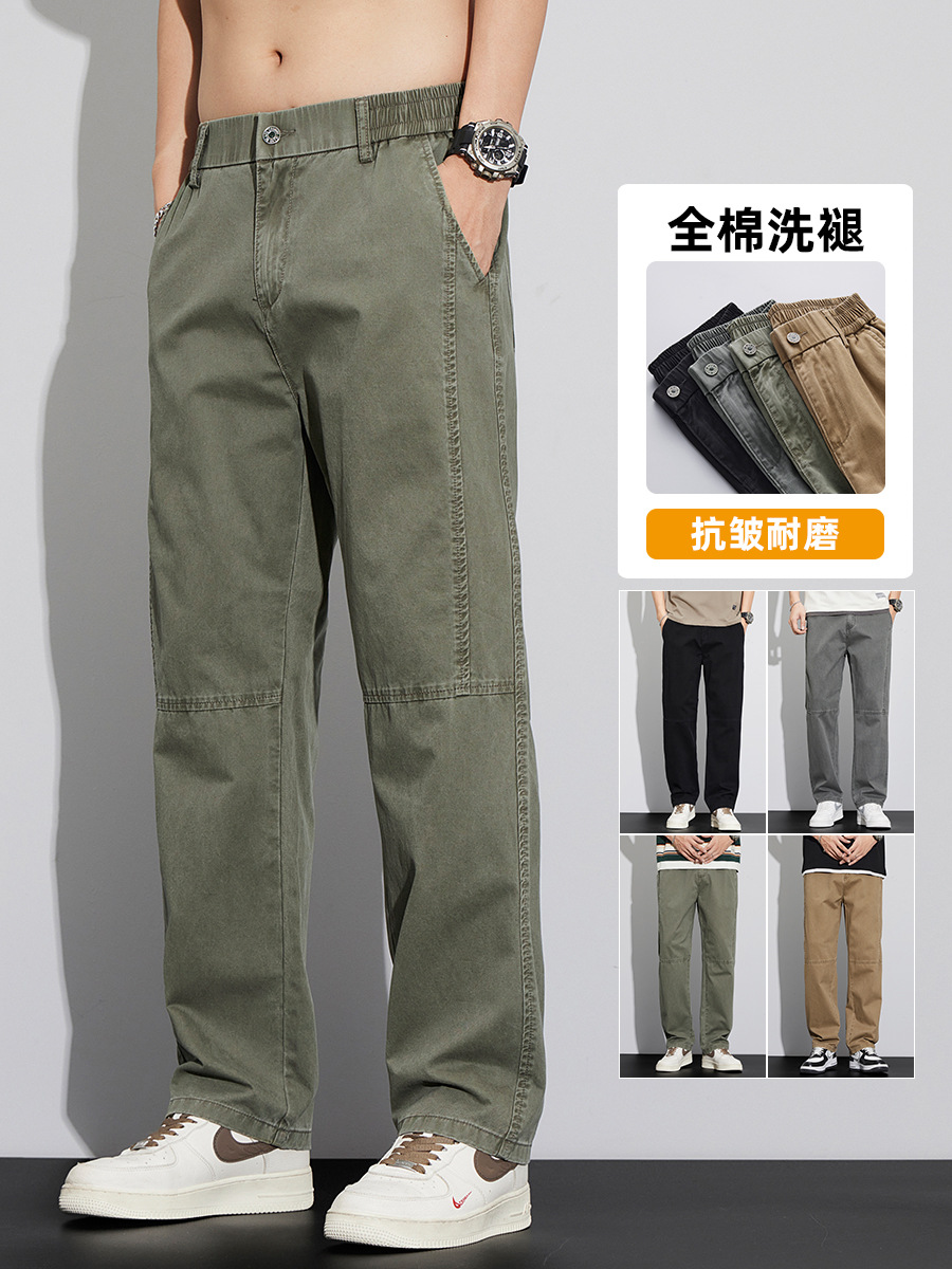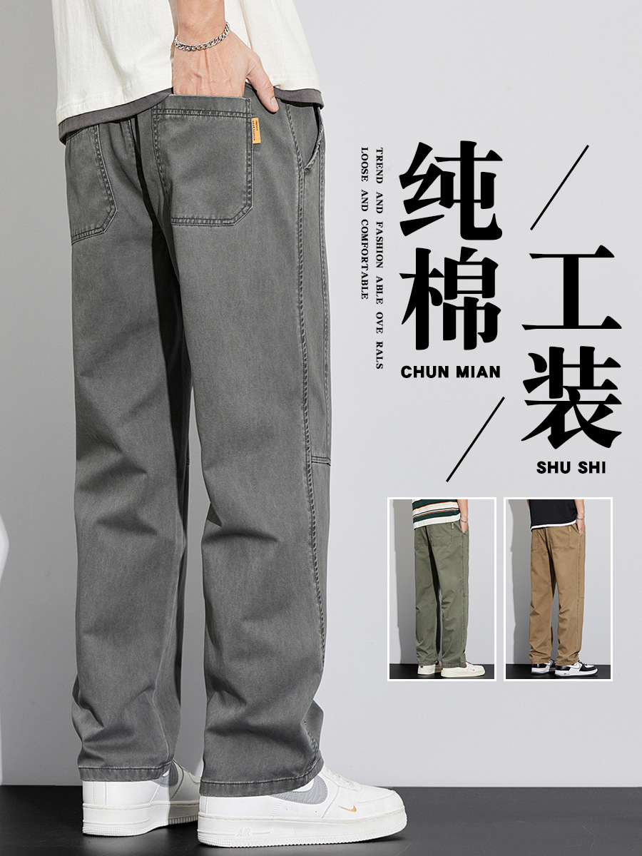 Главная страница > Прямые поставки с фабрики: мужские повседневные брюки из чистого хлопка, новые свободные прямые брюки для осени и зимы, черные брюки-карго, брюки цвета хаки.