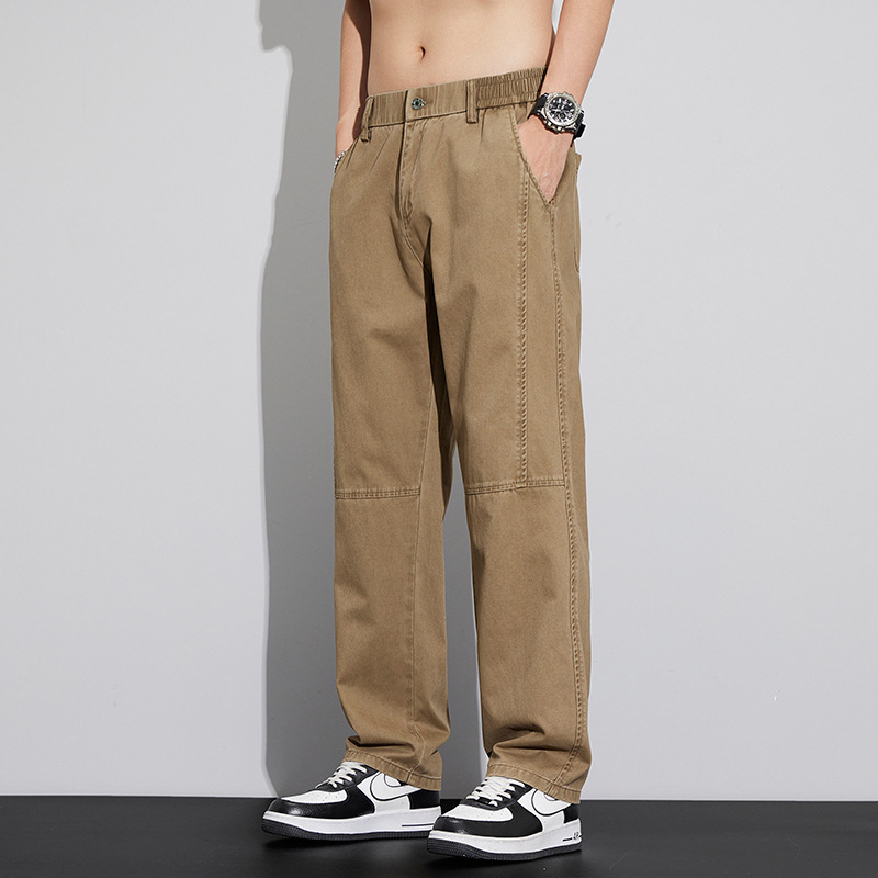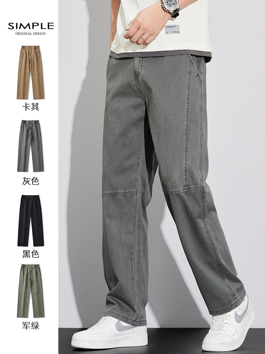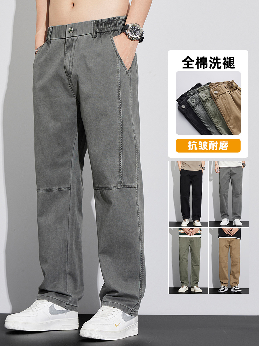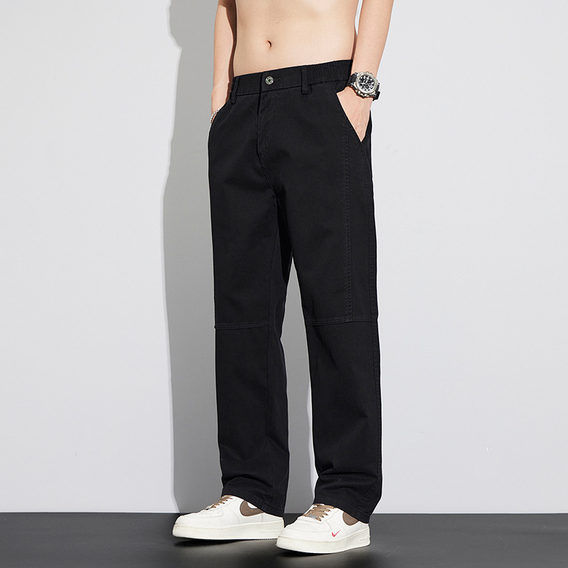Главная страница > Прямые поставки с фабрики: мужские повседневные брюки из чистого хлопка, новые свободные прямые брюки для осени и зимы, черные брюки-карго, брюки цвета хаки.