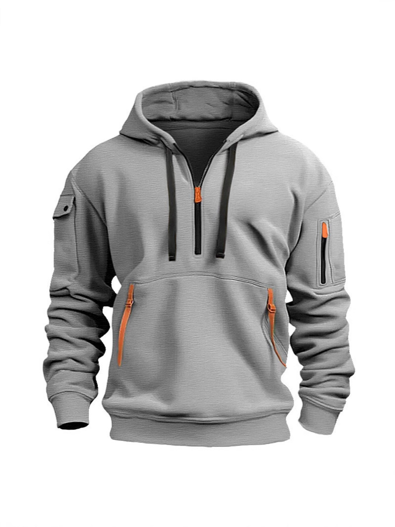 Главная страница > Трансграничная внешняя торговля Весна и Осень Мужская толстовка толстовка с капюшоном на молнии мульти-карманный пуловер Мужская спортивная повседневная куртка