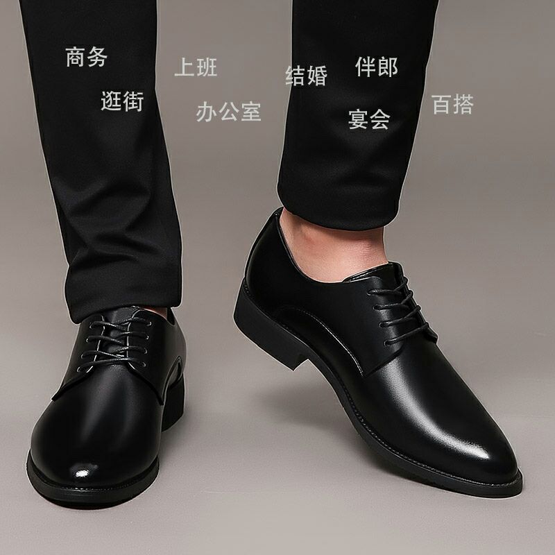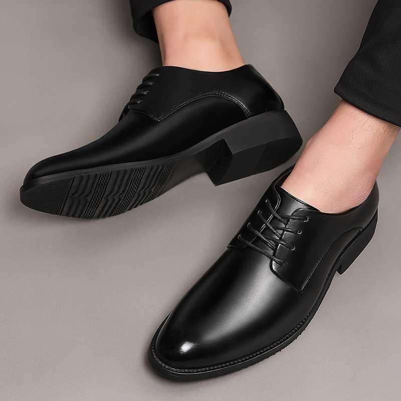 Мужские деловые туфли в корейском стиле, британские кожаные туфли для свадьбы, классические туфли с острым носком на шнуровке, мужские туфли с увеличением роста, модные повседневные туфли