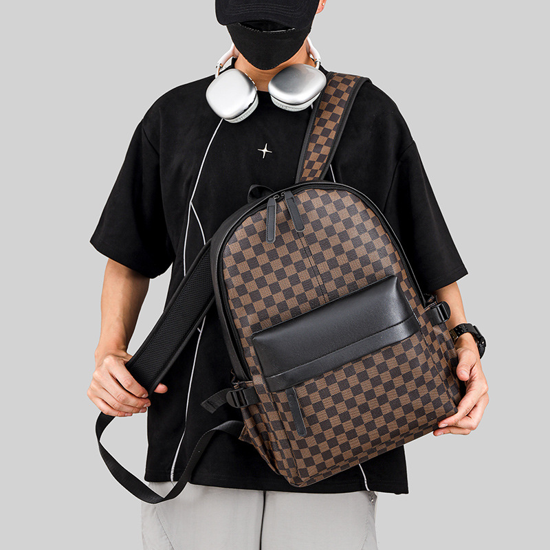 Деловая сумка в клетку с двойным плечом дикая повседневная мужская и женская пригородная компьютерная рюкзак большой емкости дорожная рюкзак школьная сумка