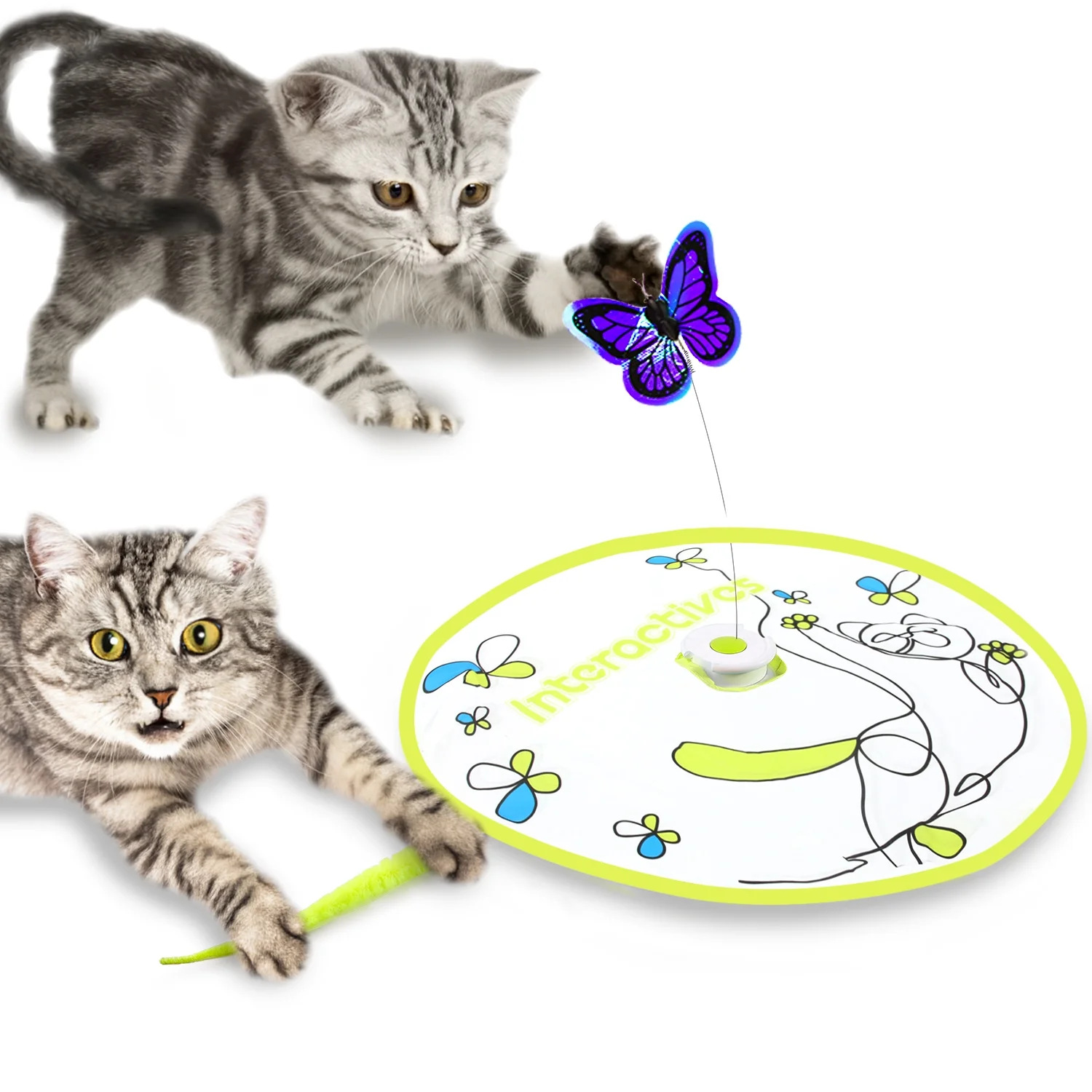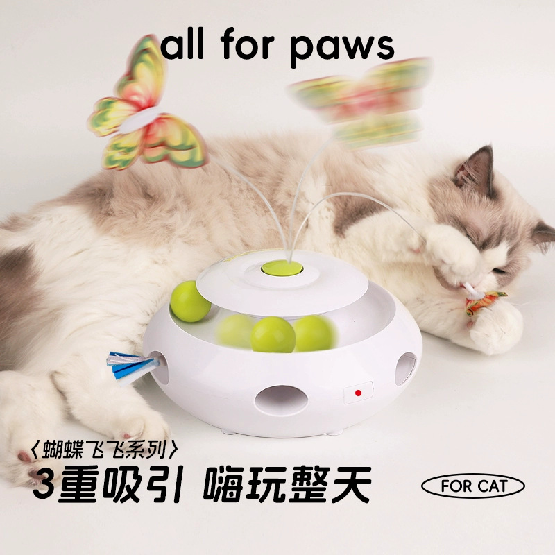 Электрическая игрушка для кошек AFP 2-в-1: вращающееся колесо и дразнилка-бабочка для самостоятельных игр и развлечений, снимающая скуку.