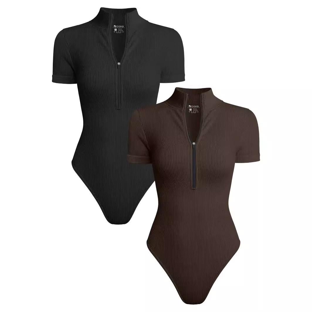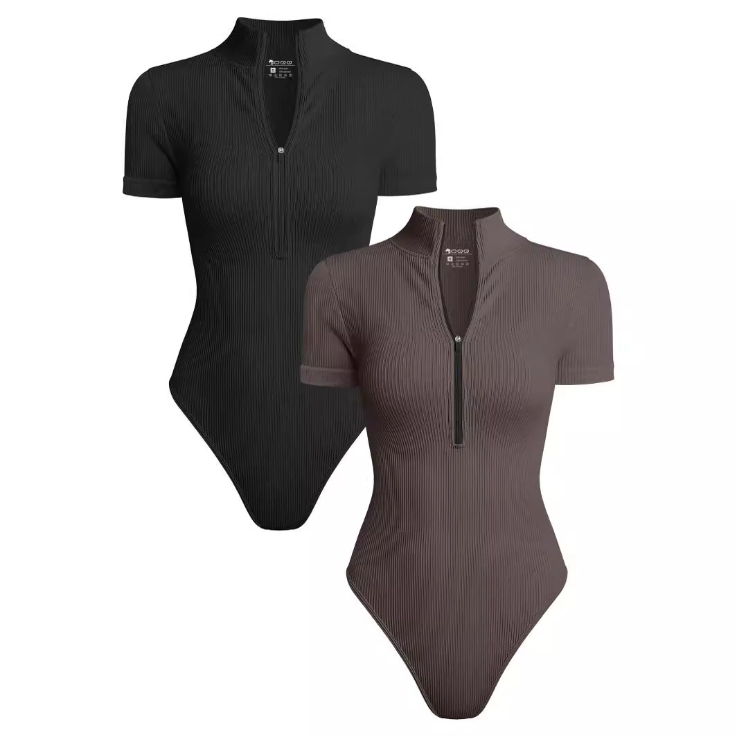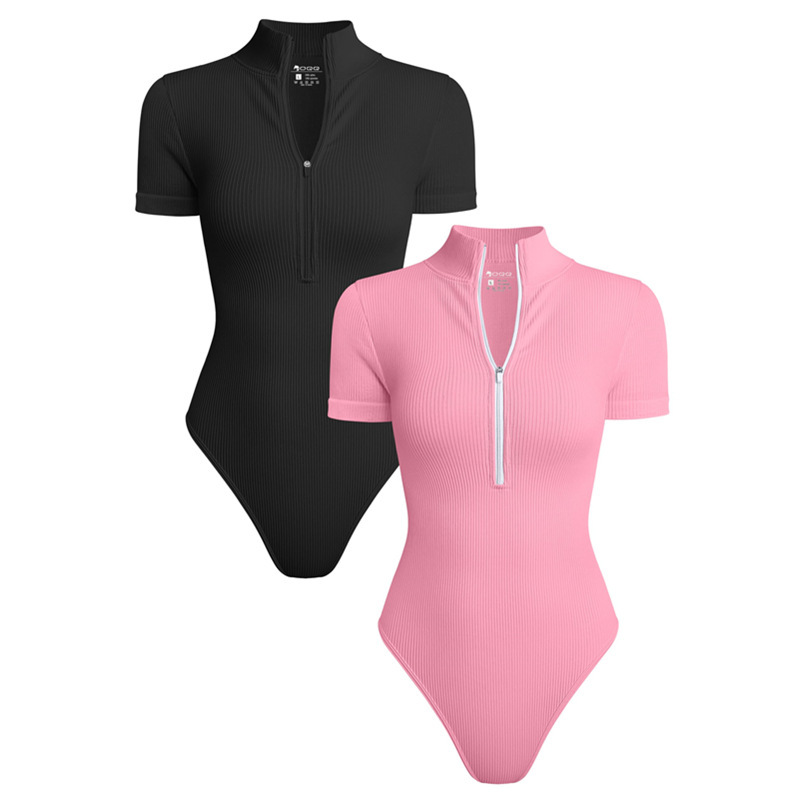 Главная страница > Женский комбинезон Amazon, сексуальный цельный комбинезон в рубчик с короткими рукавами и треугольной молнией спереди