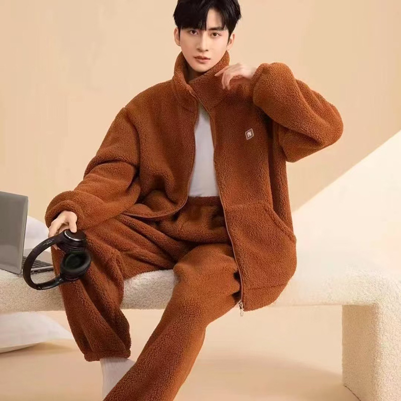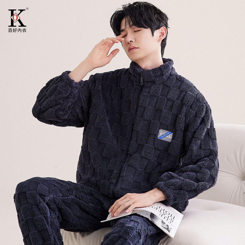 Пижамы мужские зимние утолщенные бархатные коралловые бархатные теплые фланелевые осенние и зимние мужские подростки новые домашние костюмы