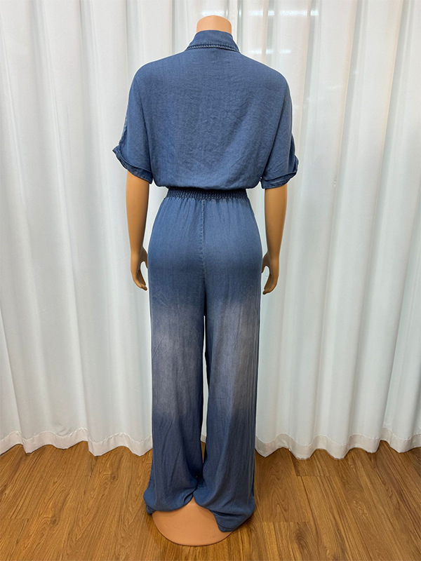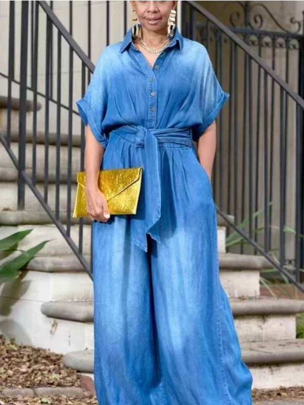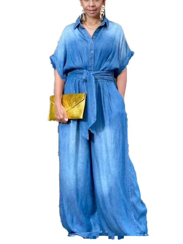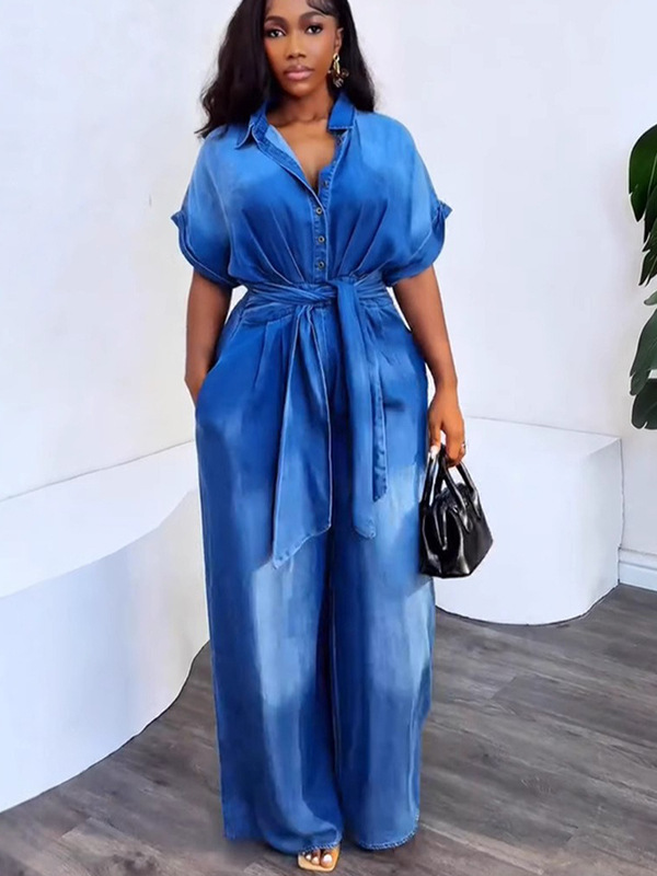 Главная страница > Amazon трансграничный модный темпераментный комбинезон с отворотом для женской одежды с короткими рукавами джинсовые свободные удобные комбинезоны