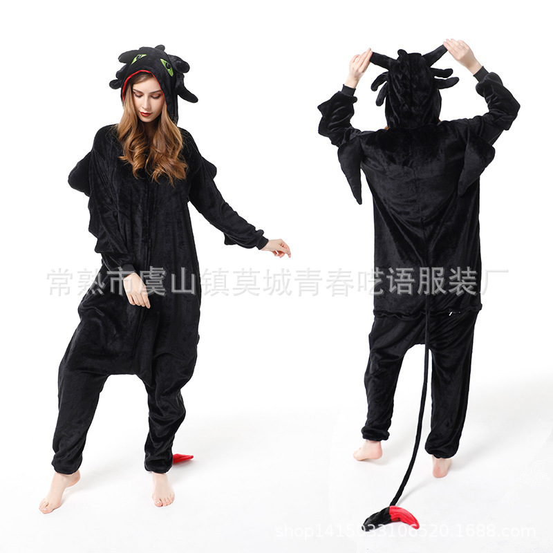 Главная страница > Осенний и зимний Кинг-Конг детские мультипликационные животные спят с черным драконом акула прыгающий тигр фланелевый мужская и женская пара домашняя одежда