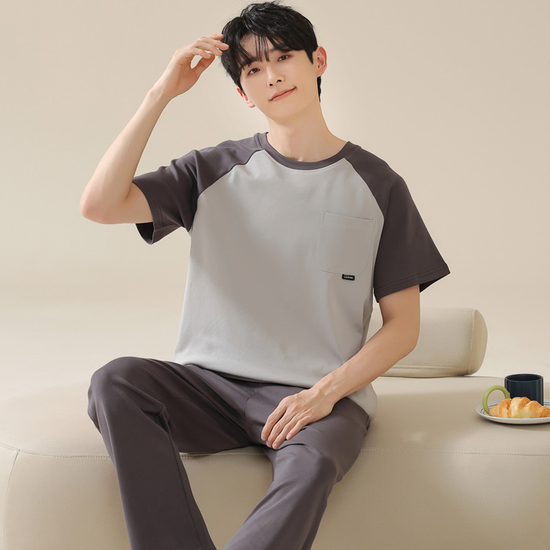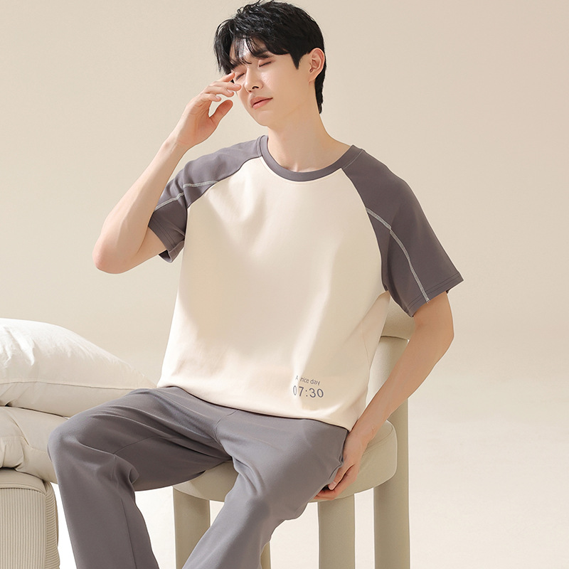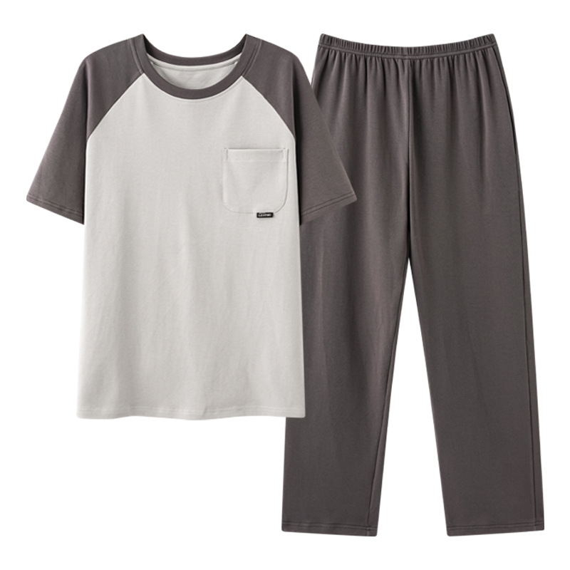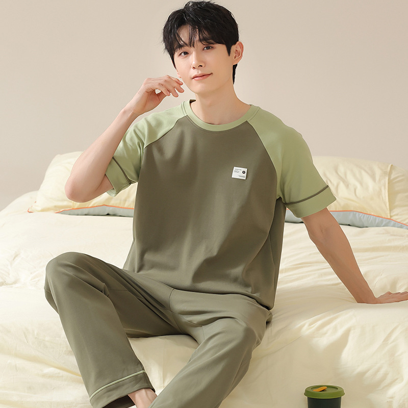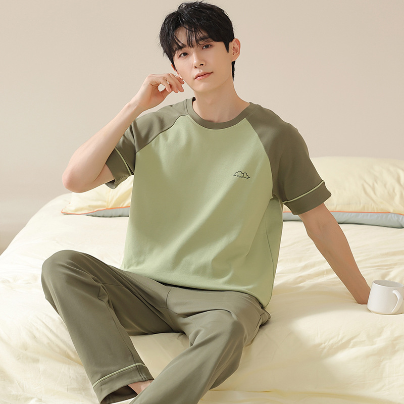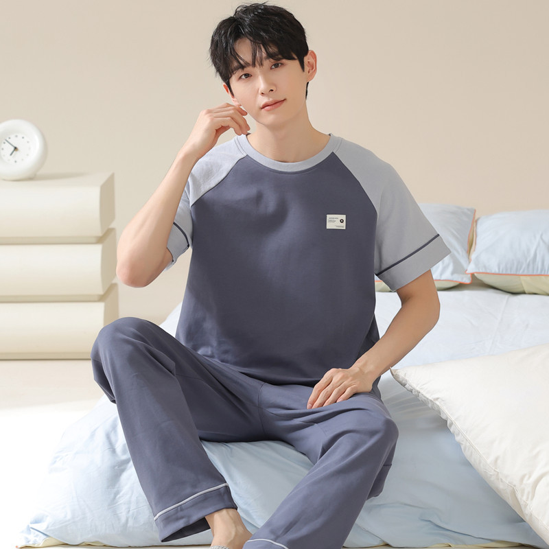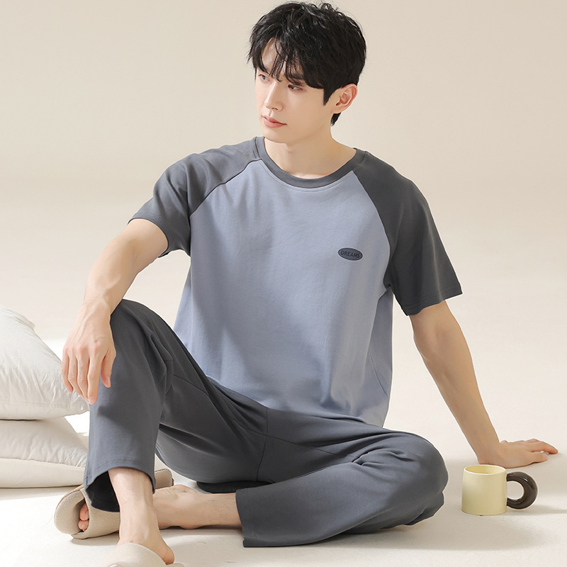 Главная страница > Трансграничная оптовая пижама мужской летний новый хлопок тонкий круглый воротник с короткими рукавами брюки большой размер одежды