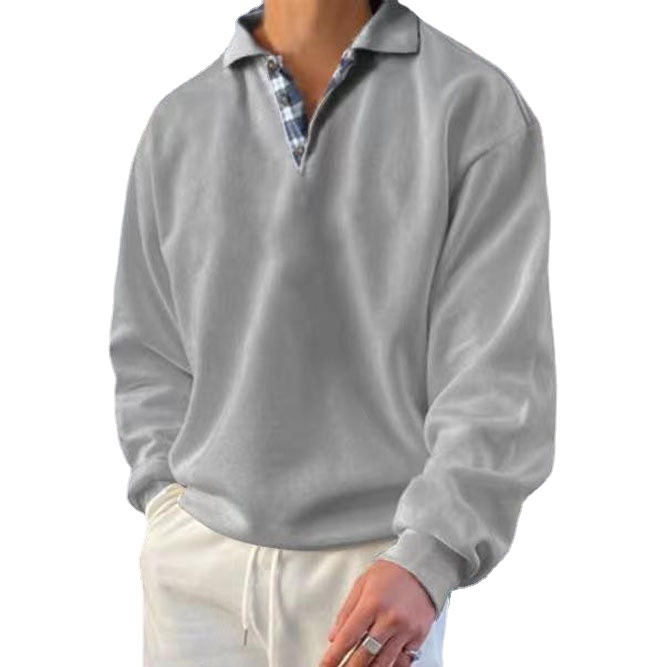Главная страница > 2025 г., популярная осенняя мужская свободная толстовка с длинными рукавами и v-образным вырезом Amazon, с лацканами, мужская одежда