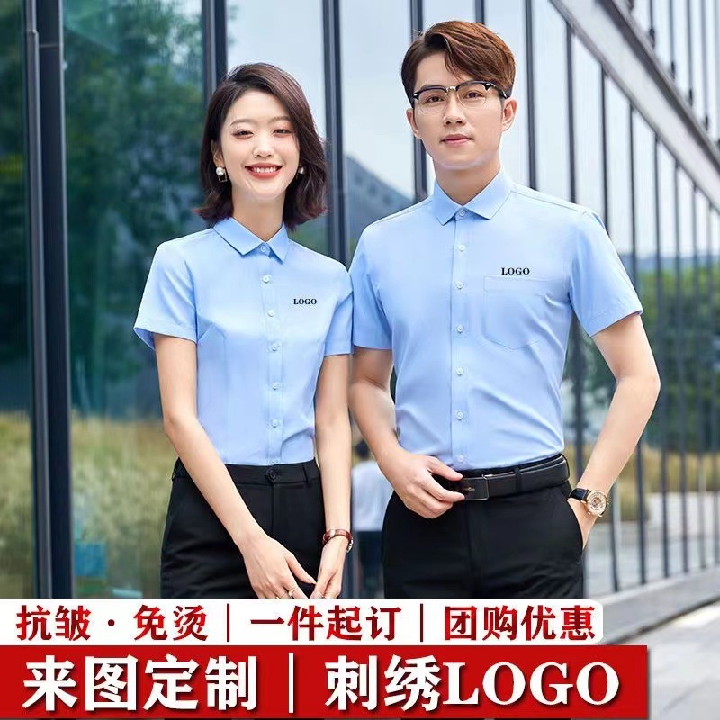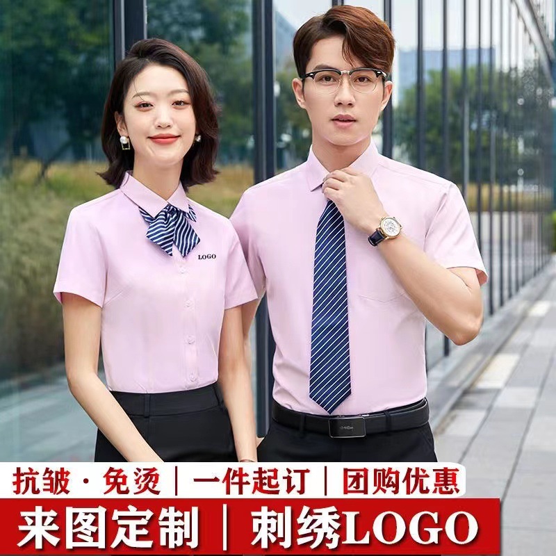 Главная страница > Профессиональная рабочая одежда по индивидуальному заказу, с вышитым логотипом, синяя рубашка, мужская и женская рабочая одежда, белая рубашка с короткими рукавами, розовая на заказ
