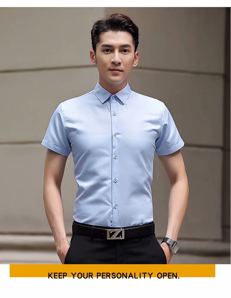 Главная страница > 2023 Новая приталенная белая рубашка с короткими рукавами в Корейском стиле для мужчин и женщин, однотонное негладильное Деловое платье, комбинезон, рубашка