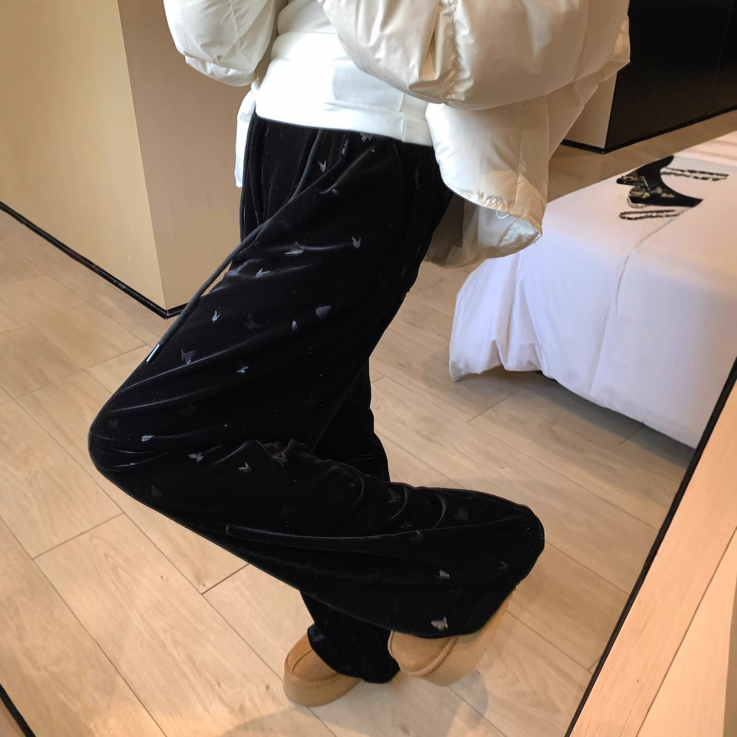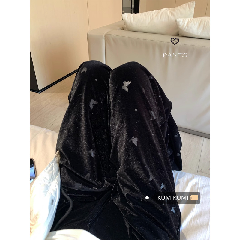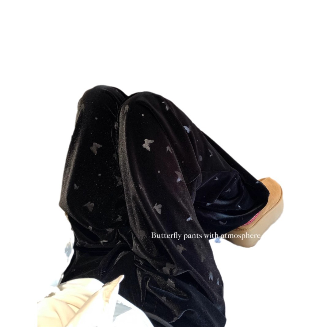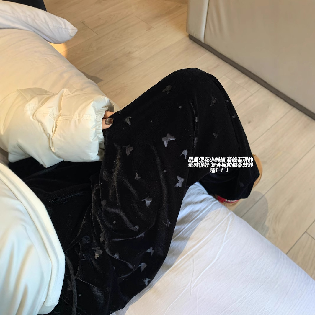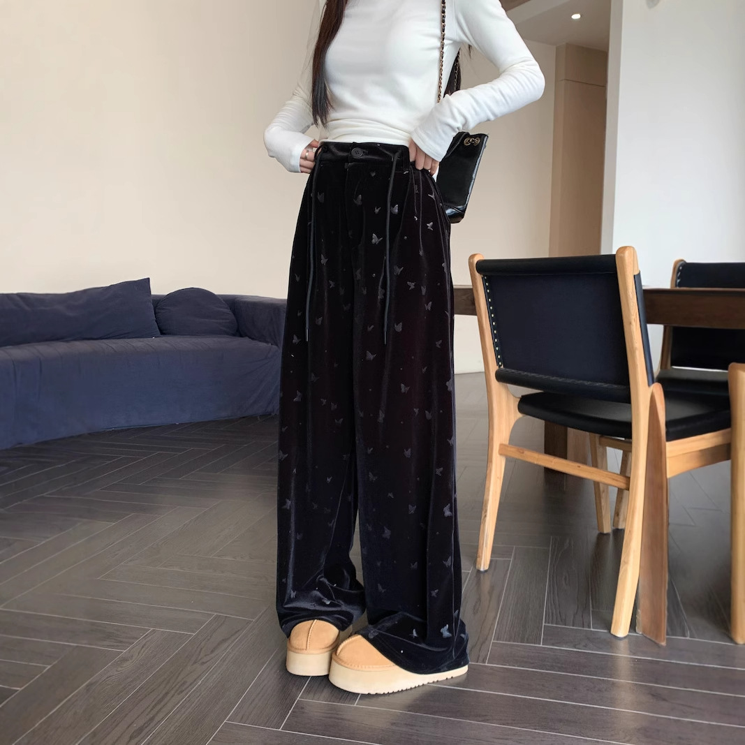 1433 # осенью и зимой бархатные утолщенные бабочки ошпаренные брюки повседневные брюки женские широкие брюки с высокой талией и широкими ногами прямые брюки
