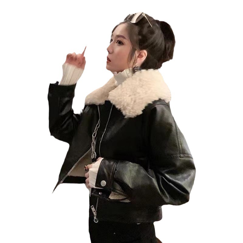 Главная страница > Кожаная одежда для женщин 2025 осень и зима новая женская одежда корейский стиль мотоциклетная кожаная куртка топ короткая верхняя одежда с высокой талией толстая секция для женщин
