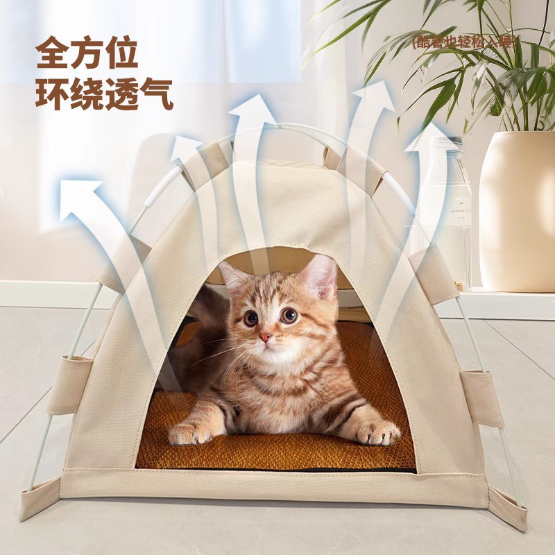 Палатка-лежанка для кошек, закрытая летняя охлаждающая и прохладная лежанка для собак, универсальная для всех сезонов, устойчивая к пятнам, легко снимается и моется, принадлежности для кошек
