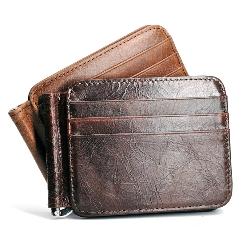 Главная страница > Новый первый слой из кожи сумасшедшей лошади, внешняя торговля, мужской практичный Золотой зажим с несколькими картами, мини-кошелек, сумка для карт C044