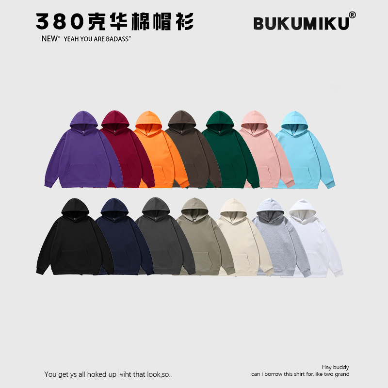 В прямом эфире 380 г осенних и зимних свитеров мужской и женский сплошной цвет настраиваемый толстовка с капюшоном