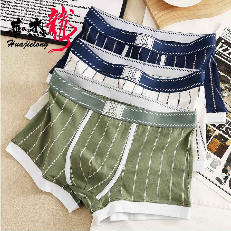 Полосатые хлопчатобумажные новые мужские трусики плоские угловые брюки