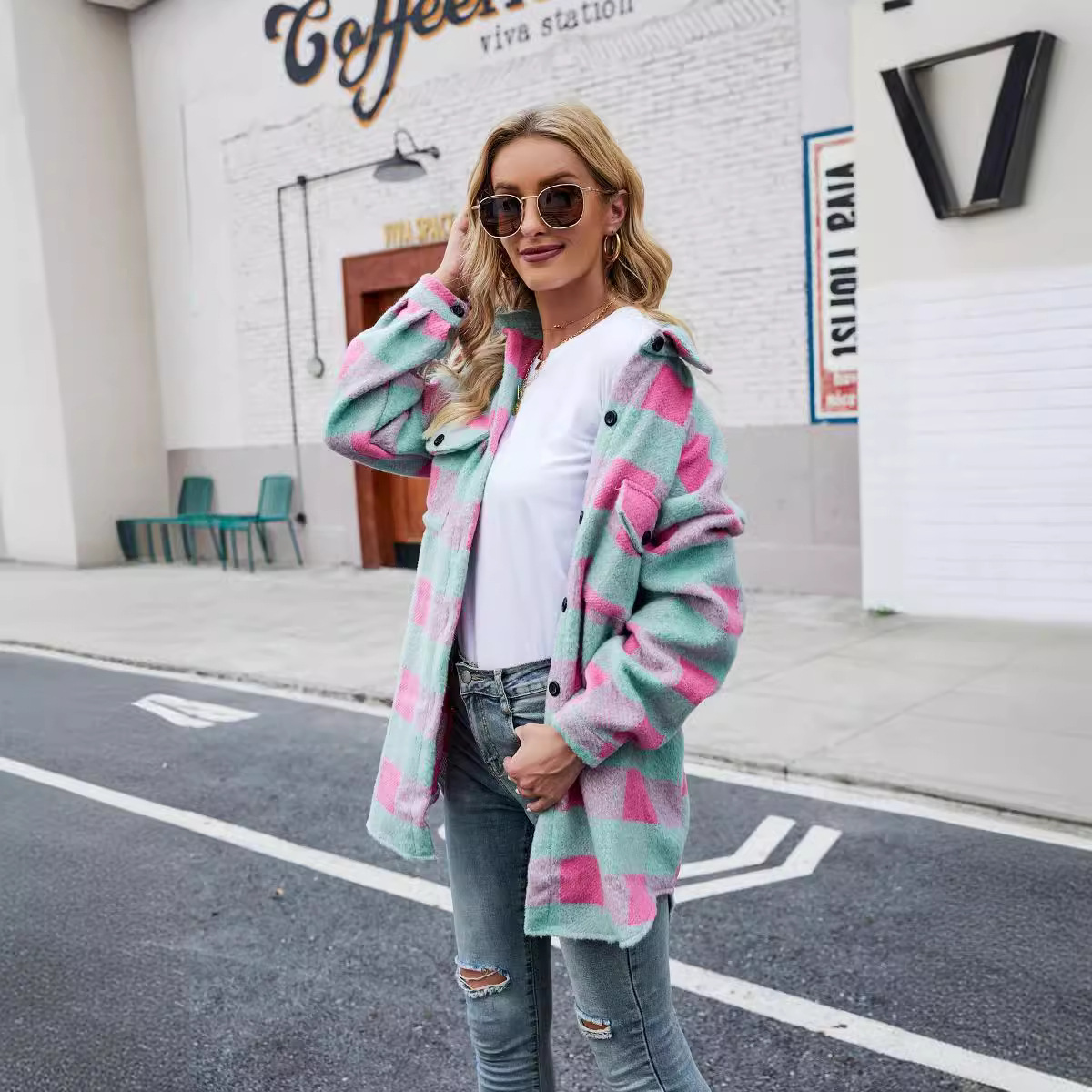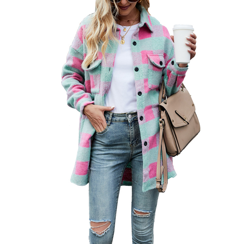 Главная страница > Европейские и американские взрывы осень/зима 2023 Новое шерстяное пальто с начесом, однобортный Кардиган с лацканами и длинными рукавами в клетку для женщин