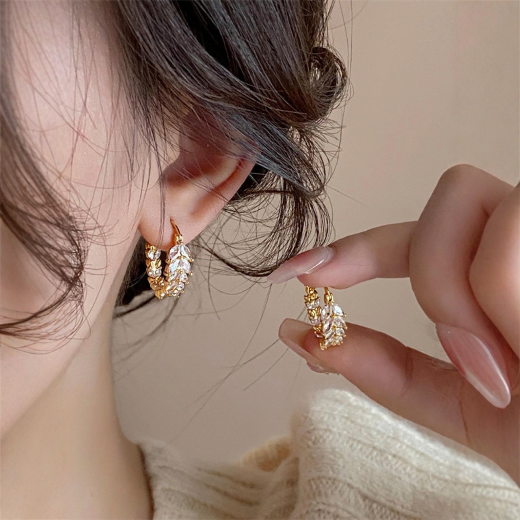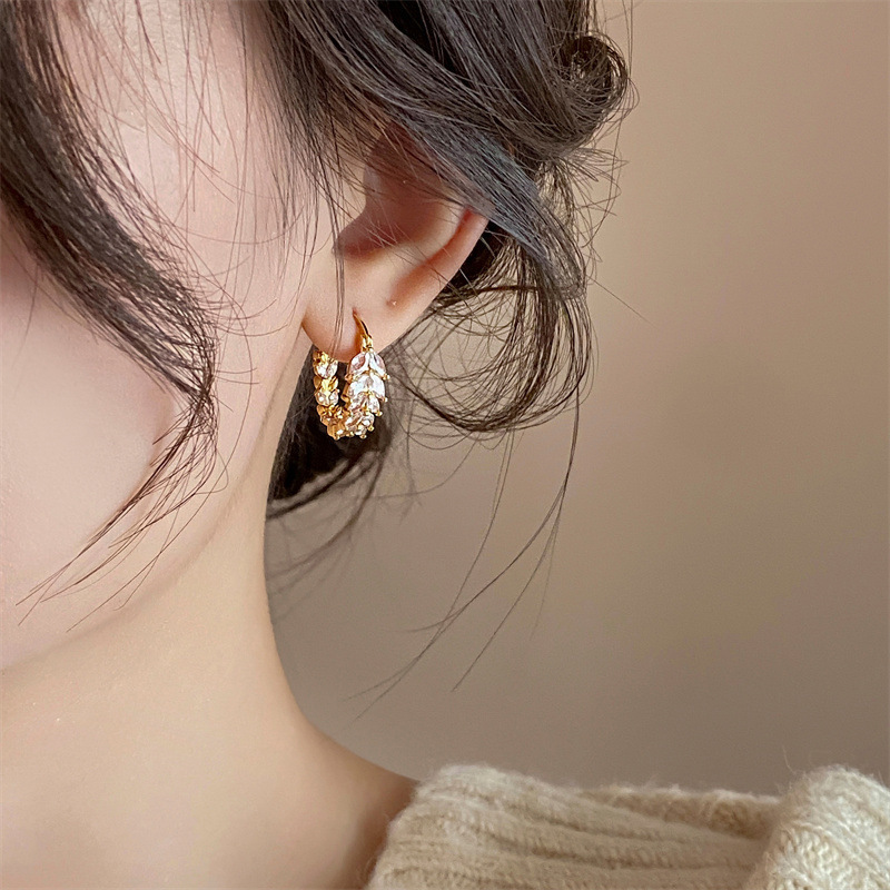 Модные высококачественные бриллиантовые серьги в корейском стиле, серьги в виде колосьев пшеницы, женские нишевые популярные простые модные серьги