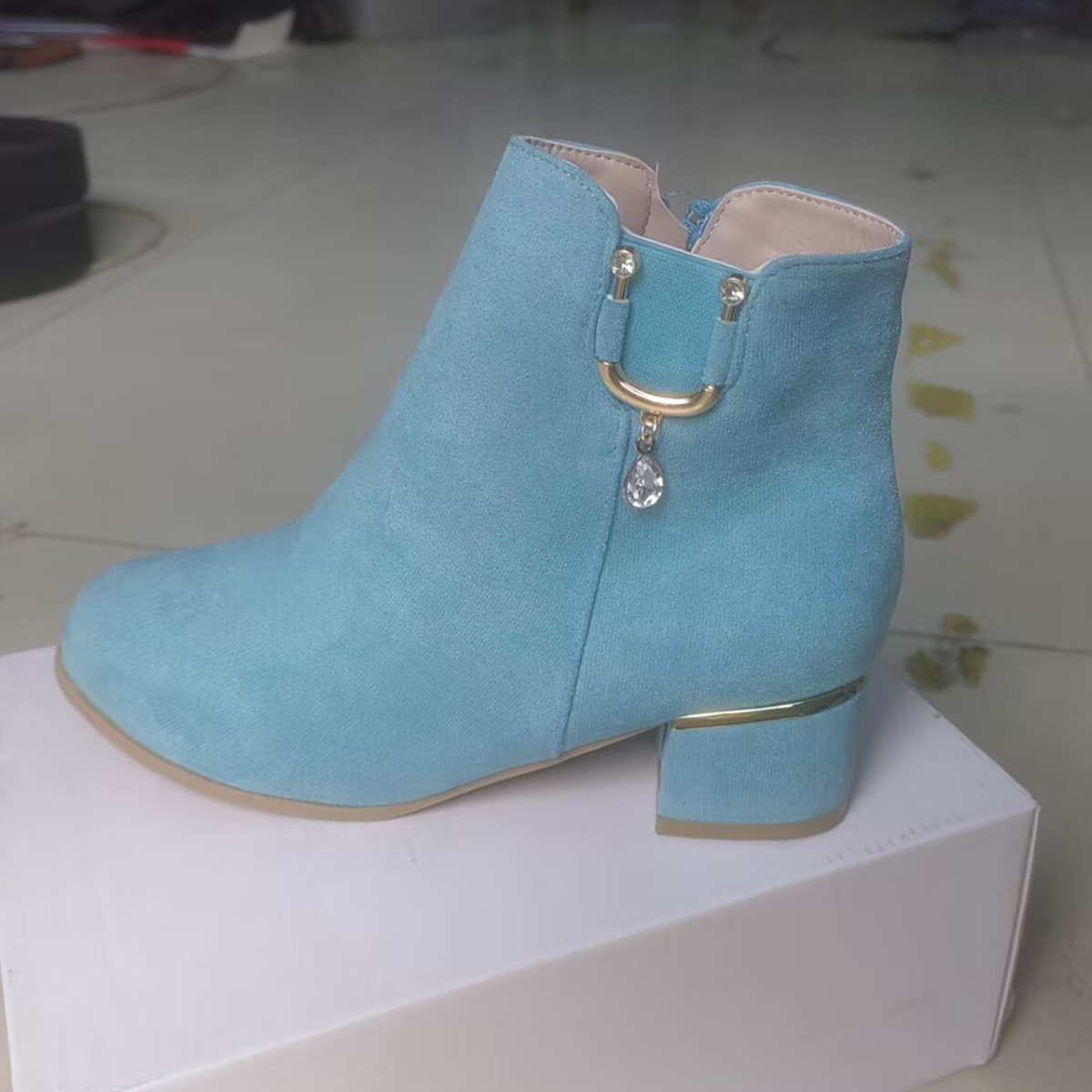 Новые женские ботинки осень-зима 2025: ботильоны со стразами, на массивном каблуке, средней высоты, замшевые, на флисовой подкладке.
