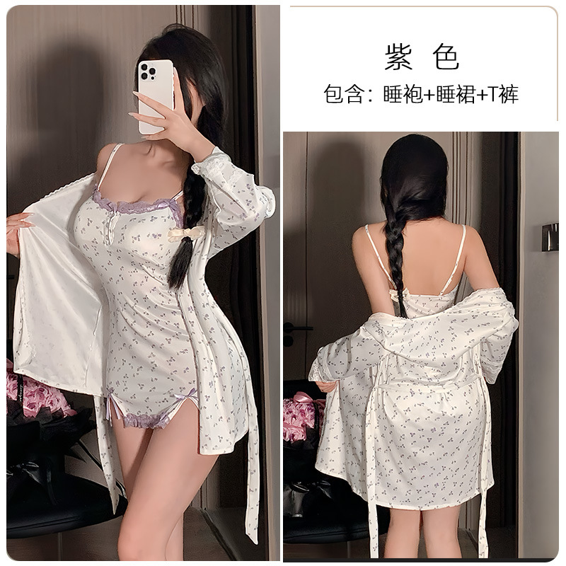 Главная страница > Комплект Meishilan Pure Desire: эластичный фиолетовый кружевной халат с цветочным узором, облегающее платье с бретельками и подкладкой для груди, 304 предмета