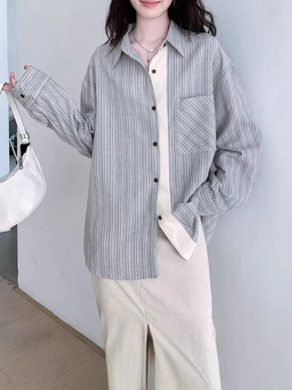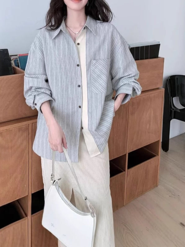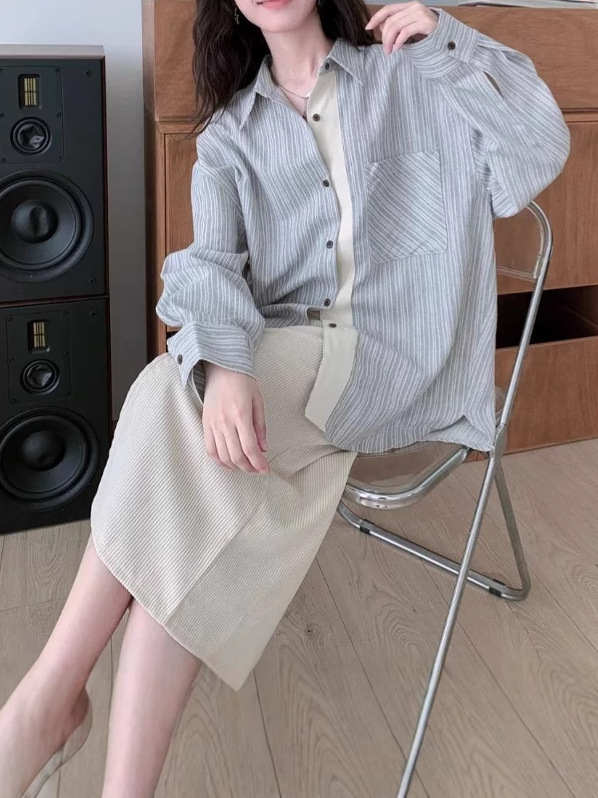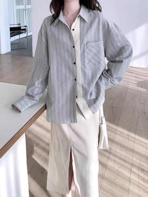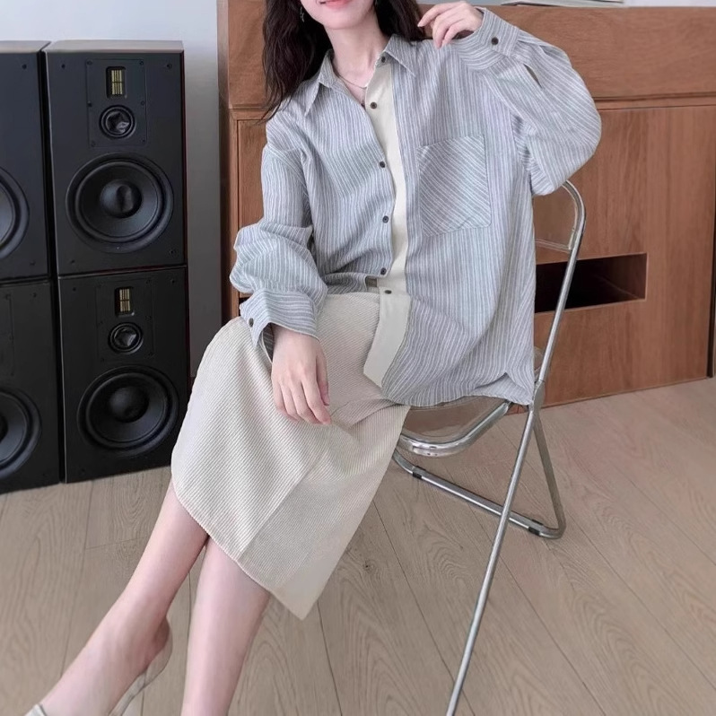 Свободная сшитая полоска рубашка с длинными рукавами женский осенний дизайн