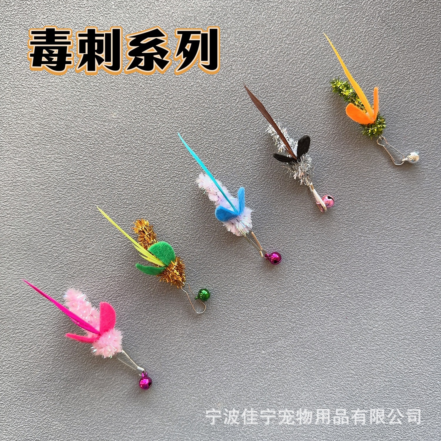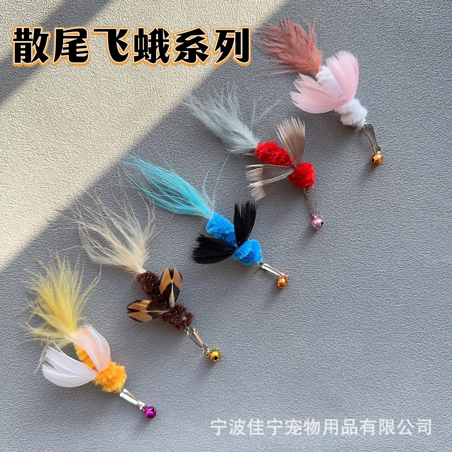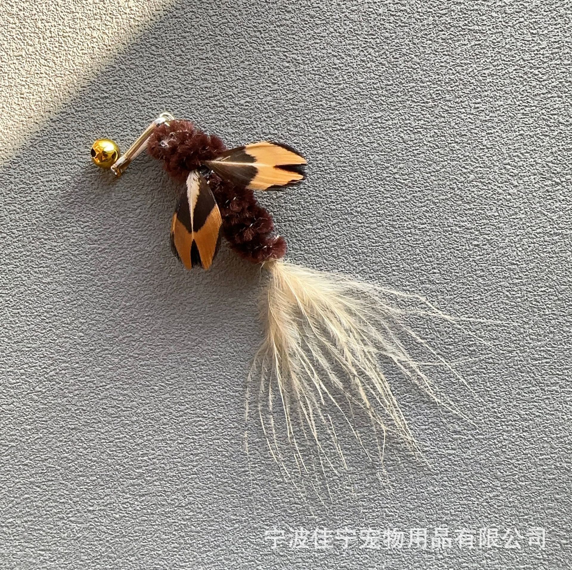 Трансграничная милая форма насекомое кошачья палка сменная устойчивая к укусам голова перо игрушка для кошек маленькое летающее насекомое домашнее животное интерактивные принадлежности