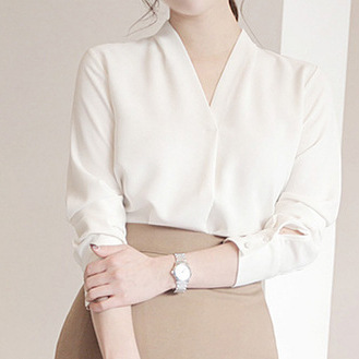 Главная страница > Белая шифоновая рубашка для женщин, с V-образным вырезом, в корейском стиле, свободный топ с длинными рукавами, белая рубашка, корейская версия, летняя профессиональная одежда для женщин 2025 года.