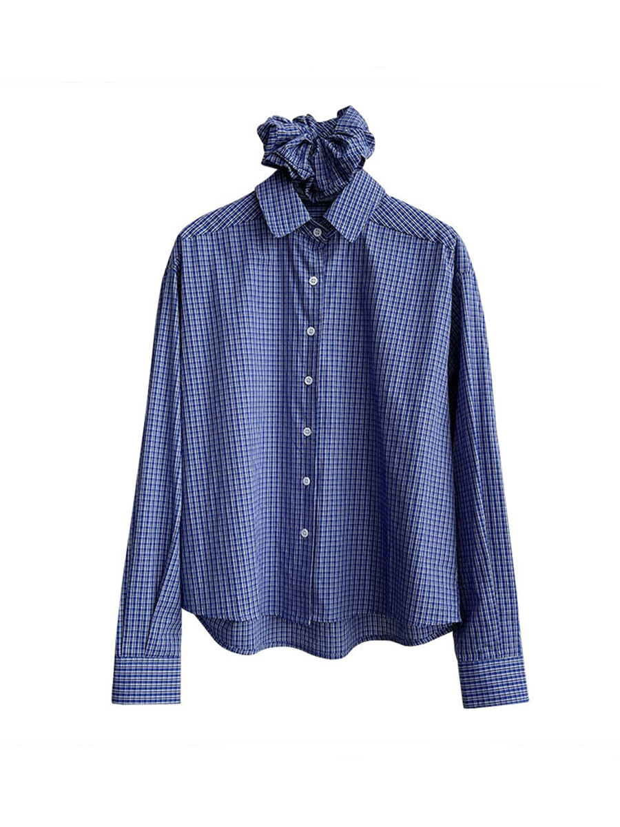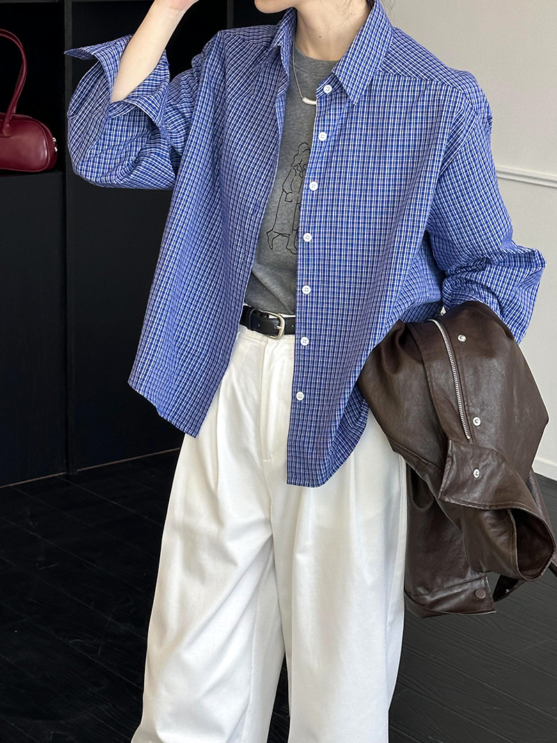 Главная страница > Juzhi 2025, новая стильная блузка на раннюю осень, универсальная повседневная рубашка с длинными рукавами в синюю клетку для женщин, 5258