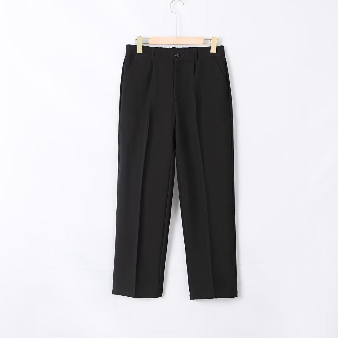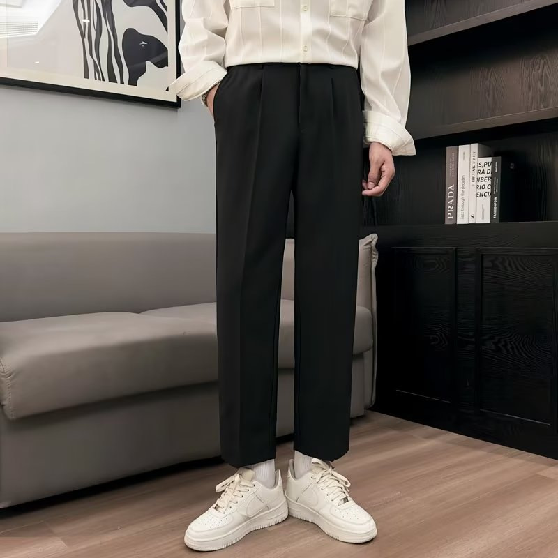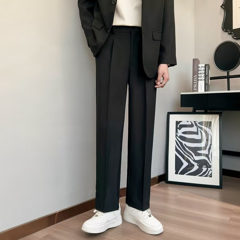 Главная страница > Молодые мужчины весной и летом высокого уровня вертикальные брюки маленькие брюки свободные прямые ножки черные длинные повседневные брюки
