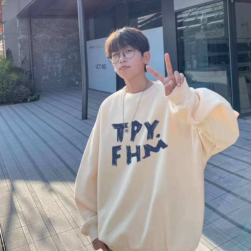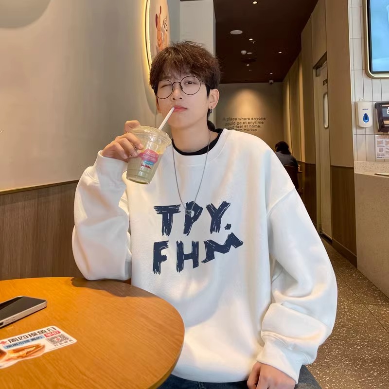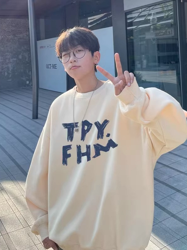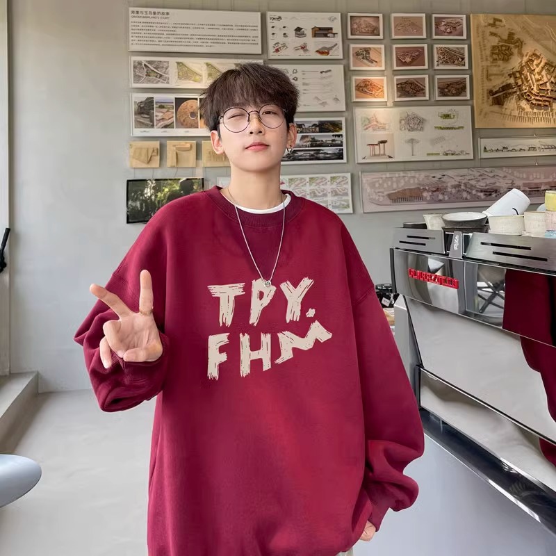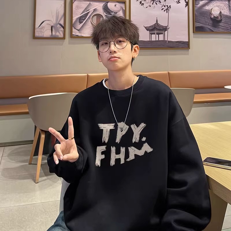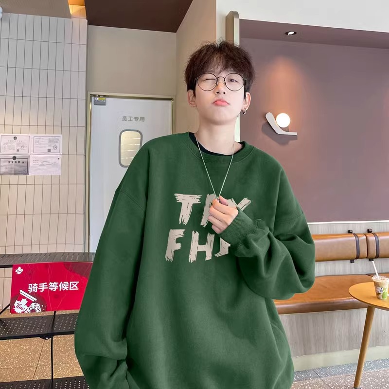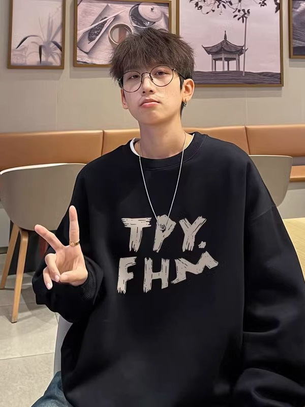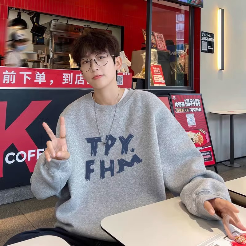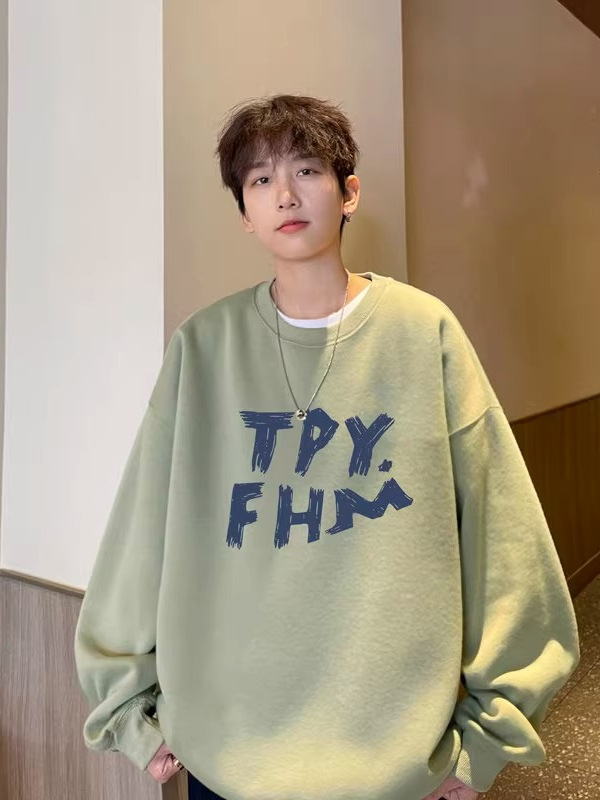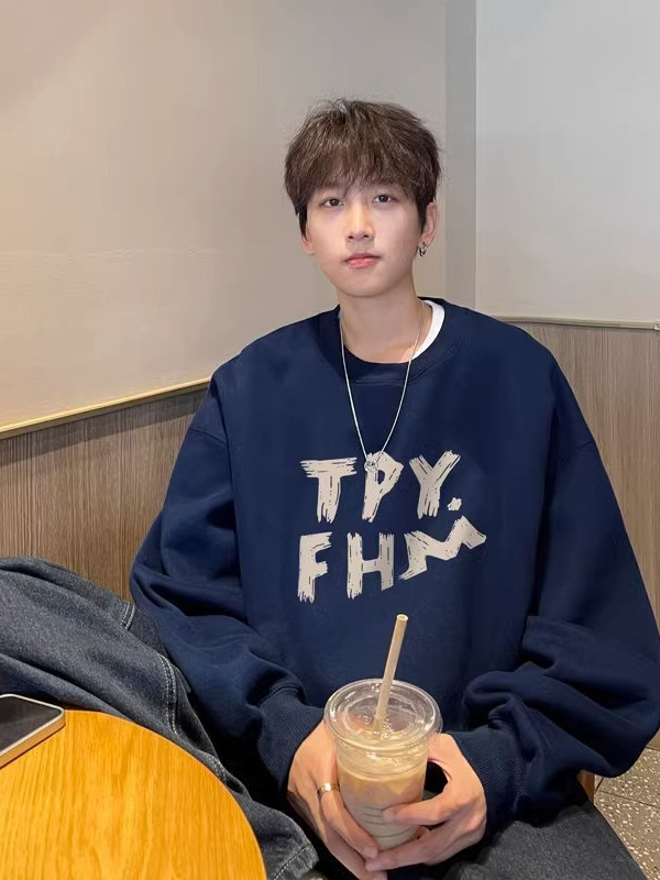 Главная страница > Высокое качество темно-голубой тяжелый плюс бархатный хлопок без шапки круглый воротник свитер мальчик осень зима новый американский ретро подросток