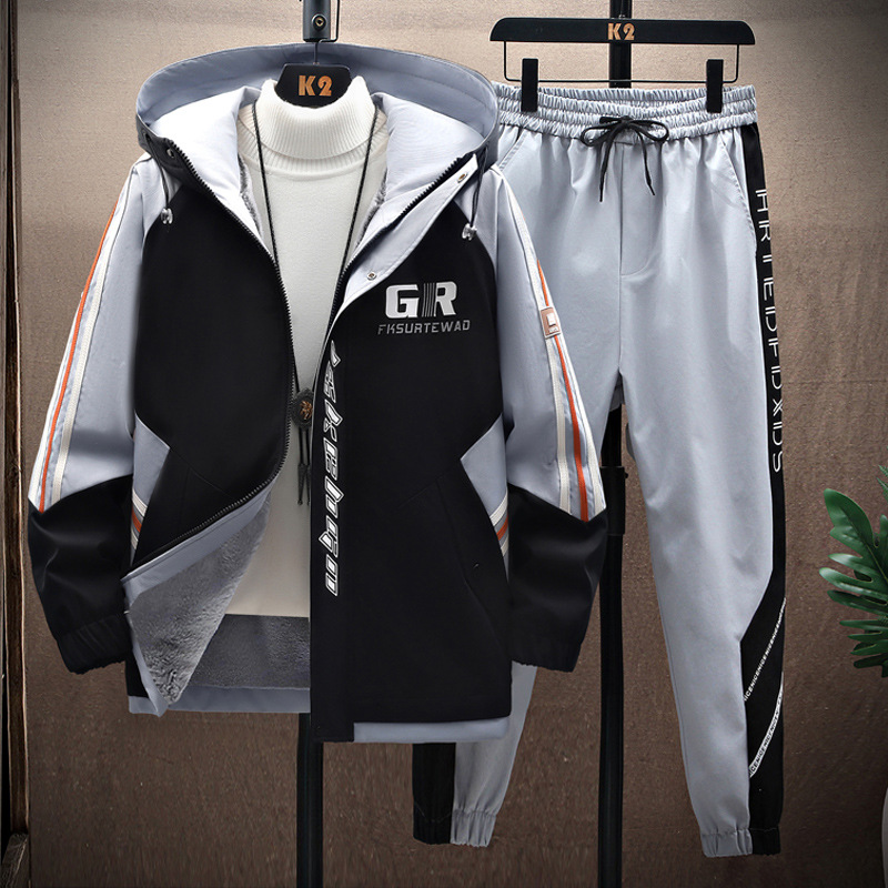 TZ8802 Бархатный утолщенный черно-серый [Комплект] Куртка + брюки