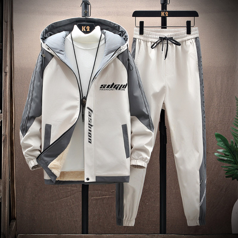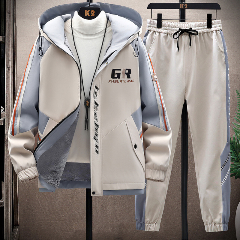 TZ8899 Бархатный и утолщенный бежевый [Комплект] Куртка + брюки