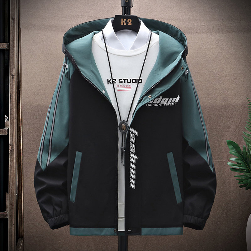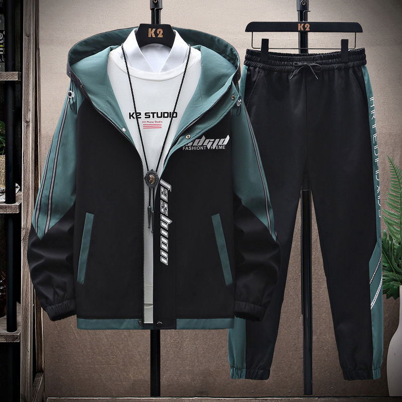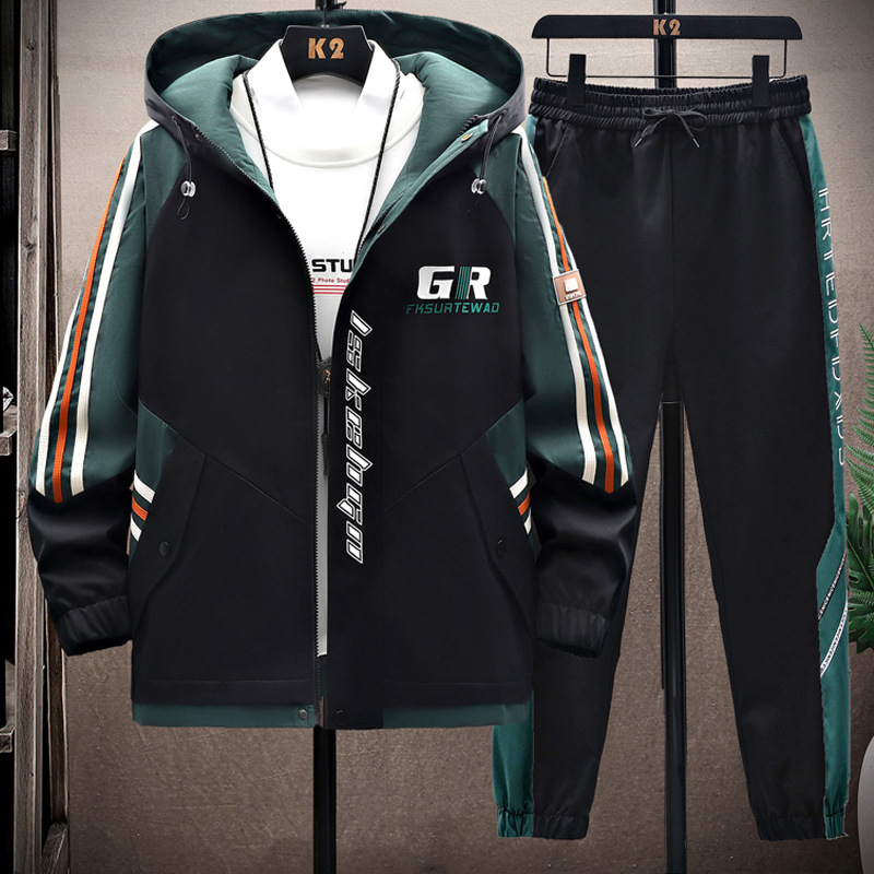 TZ8899 Весна и осень Черный и зеленый [Комплект] Куртка + брюки