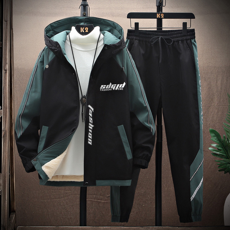 TZ8899 бархатный утолщенный черный и зеленый [костюм] куртка + брюки