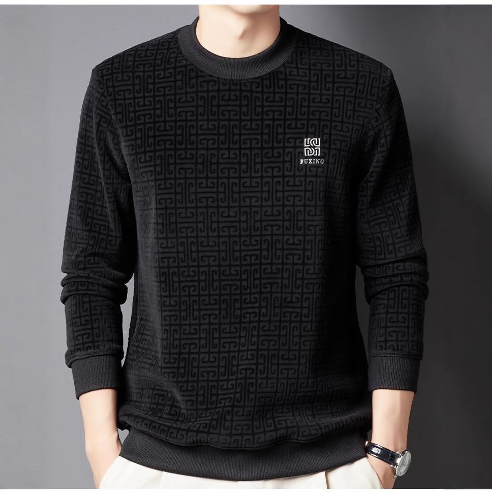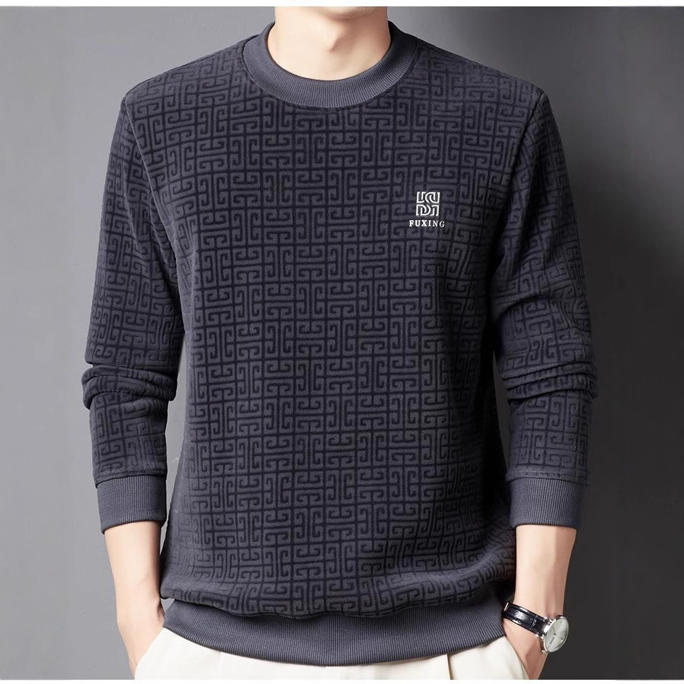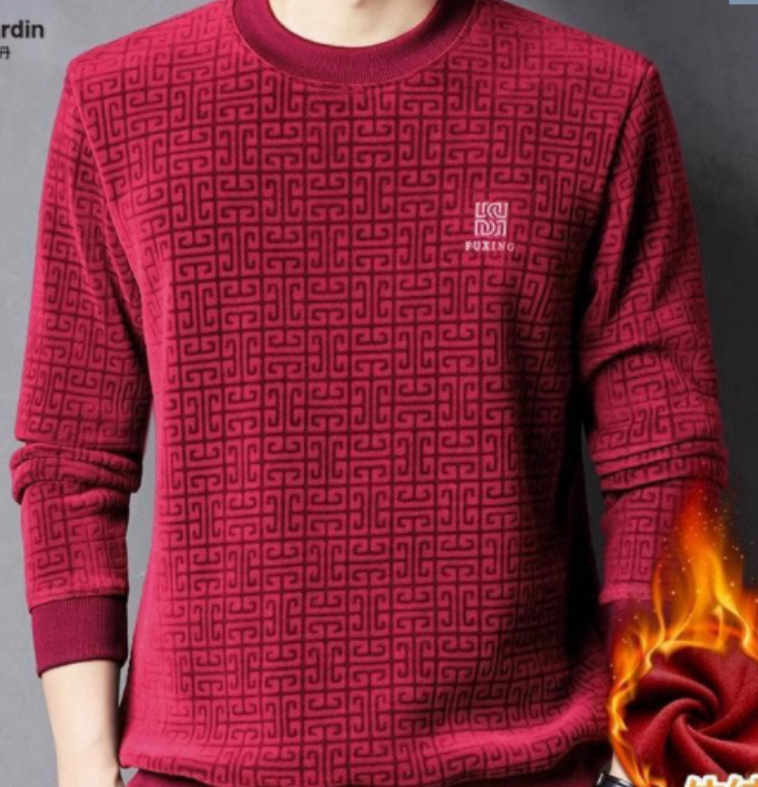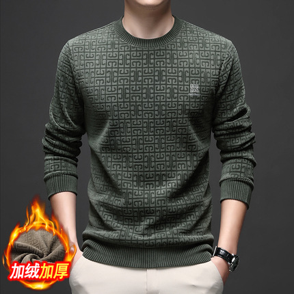 Главная страница > Осенне-Зимний новый мужской теплый повседневный флисовый свитер из синели для мужчин среднего и пожилого возраста с круглым вырезом, мужская одежда