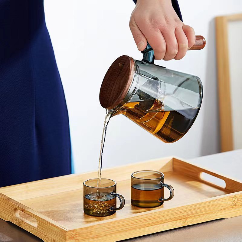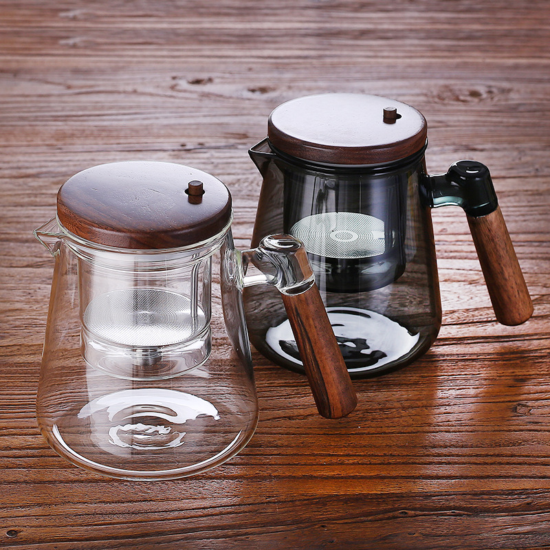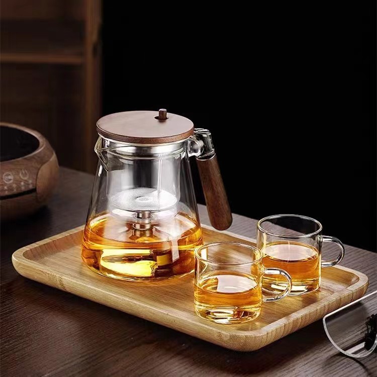 Главная страница > Горшок из орехового дерева, утолщенный стеклянный вкладыш, фильтрующий чай с одним щелчком