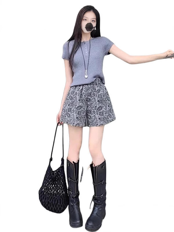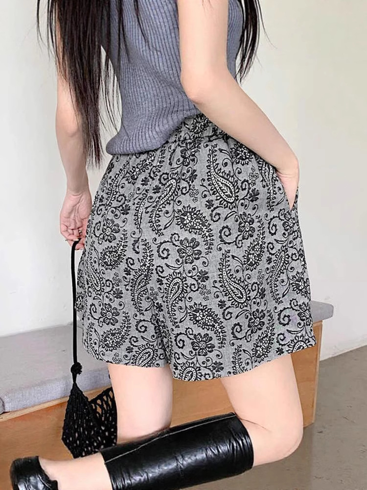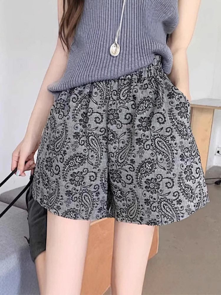 Главная страница > Повседневные женские шорты больших размеров в стиле ретро с узором пейсли, новый летний стиль, эластичная талия, свободный крой, утягивающие широкие шорты.