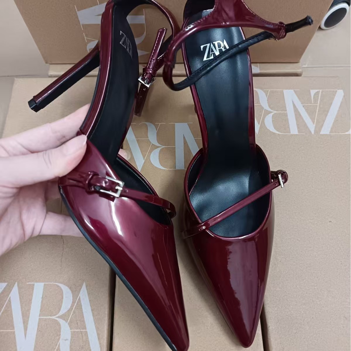 Главная страница > 2024 новые осенние женские туфли в винно-красной лакированной коже с заостренной и неглубоким ртом на высоких каблуках