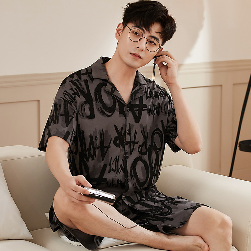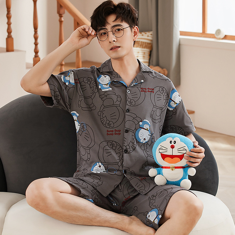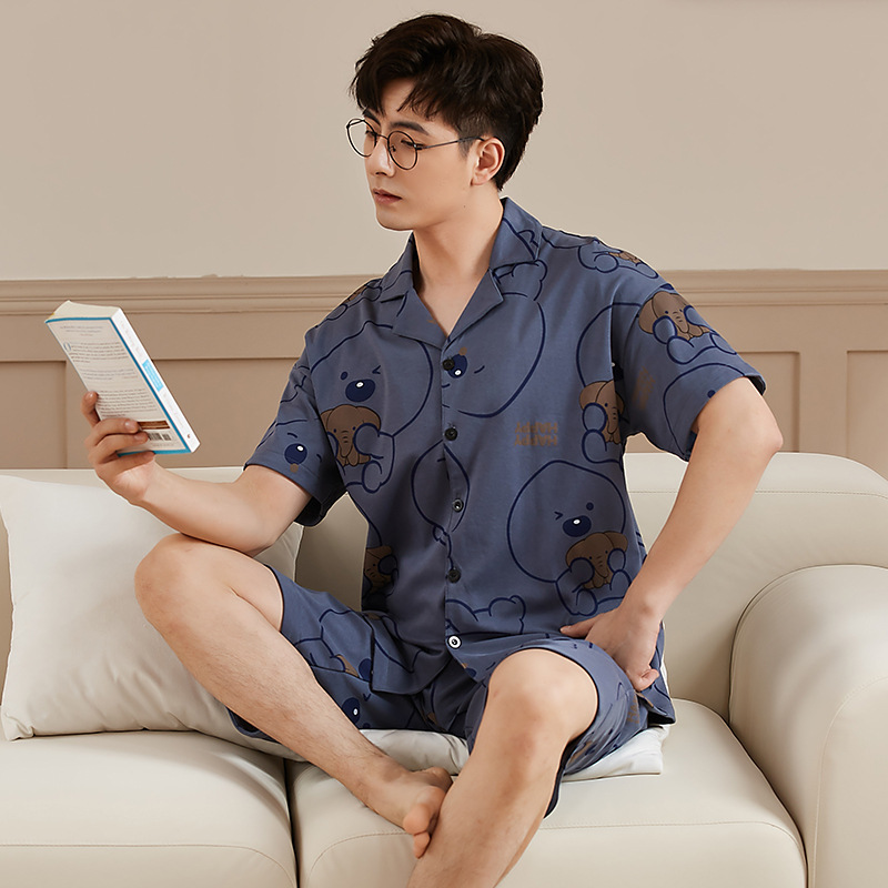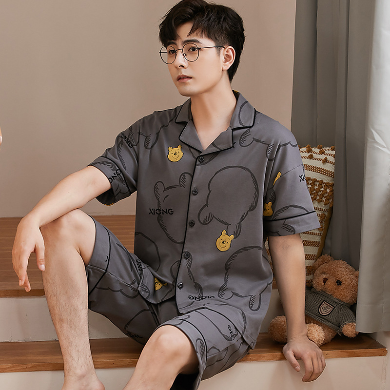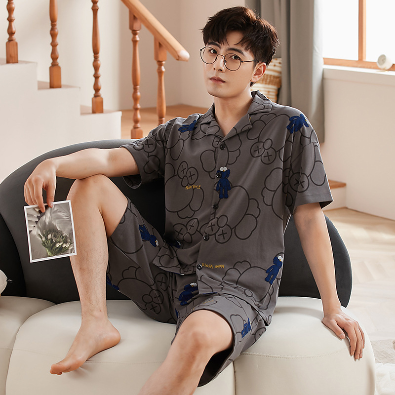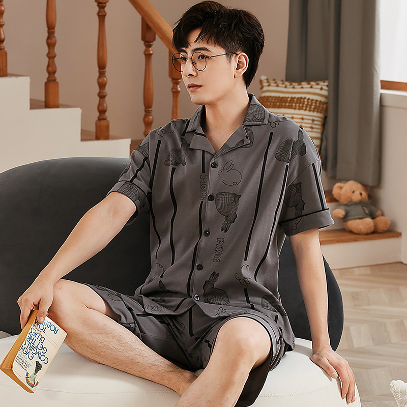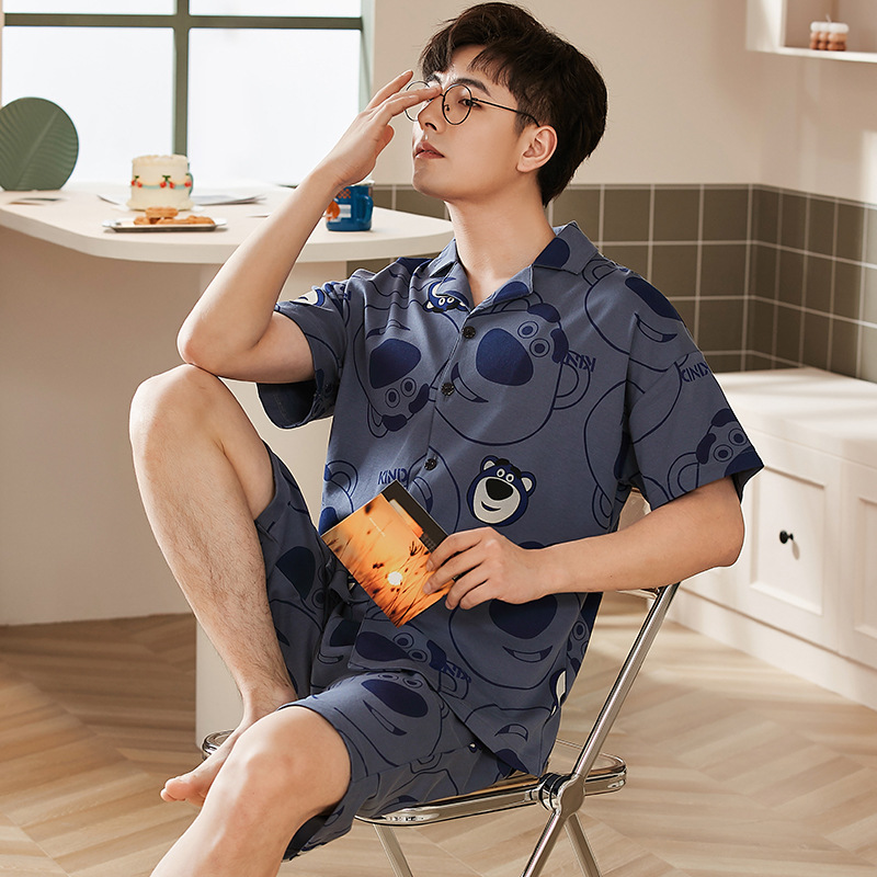 Главная страница > Пижамы мужские летние шорты из чистого хлопка с короткими рукавами, домашняя одежда, мужской летний тонкий внешний костюм из чистого хлопка