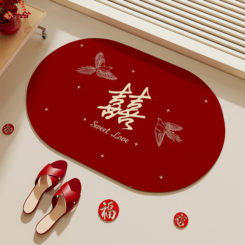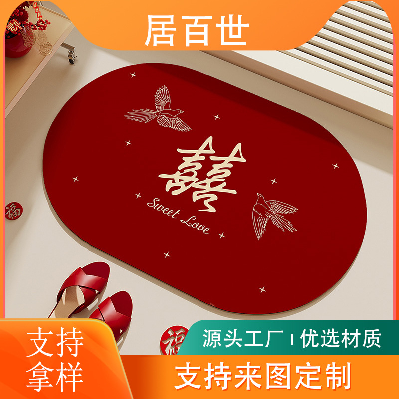 Красный свадебный праздничный коврик для ванной комнаты из диатомовой грязи, нескользящий коврик для туалета, ванной комнаты, легко ухаживаемый впитывающий коврик