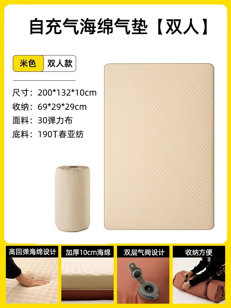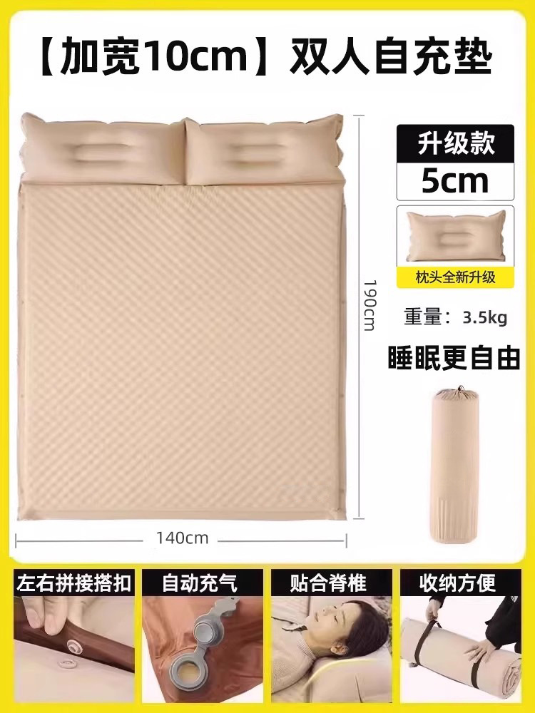 [На 10 см шире] Автоматический надувной матрас толщиной 5 см — двойной