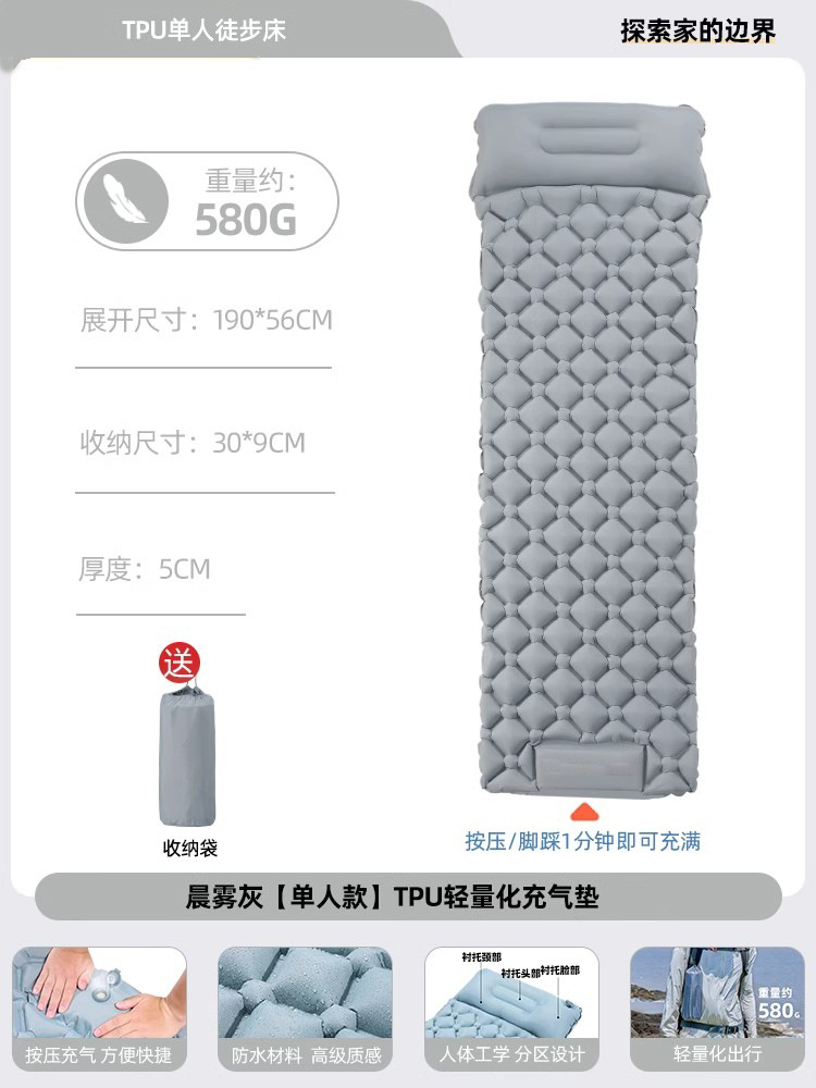[Deep Space Grey] Автоматический надувной коврик шириной 5 см, двойной
